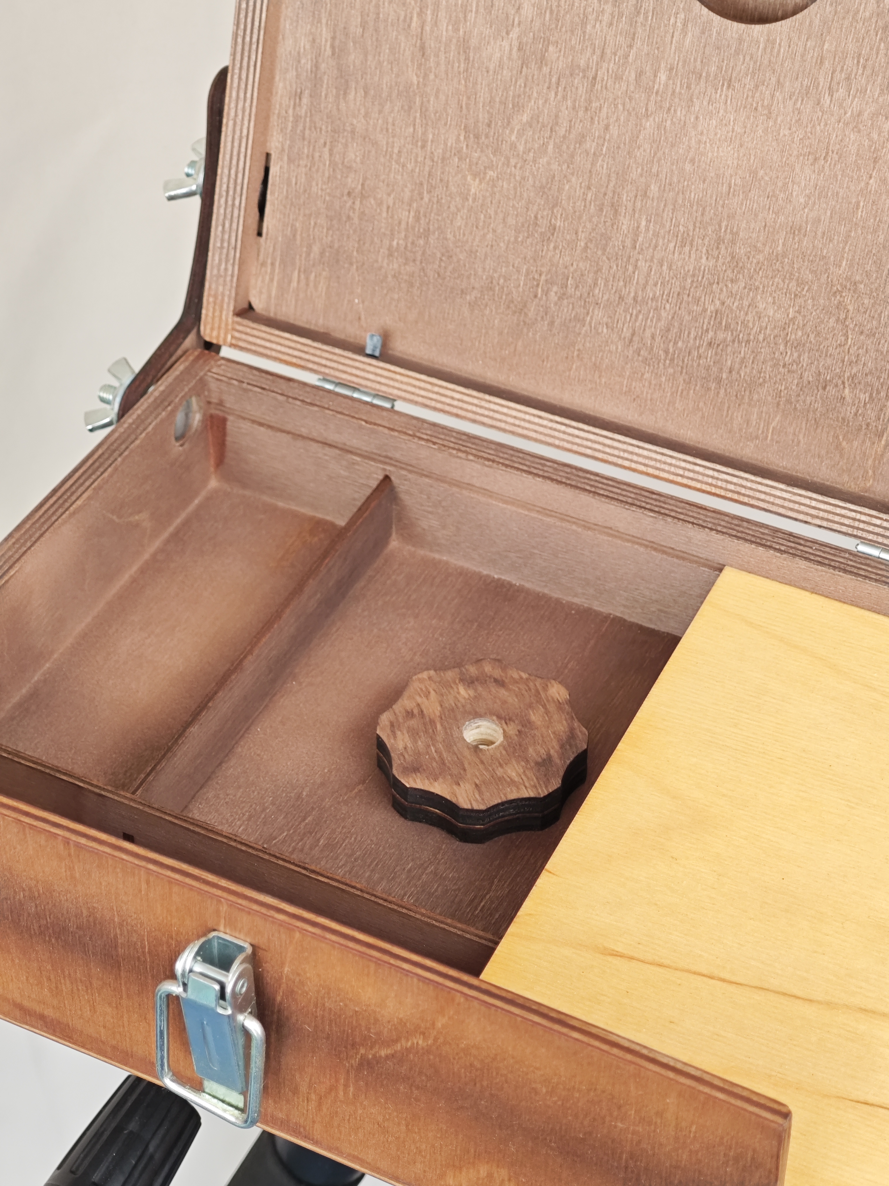 Удобен в работе, компактен, благодаря тому, что выполнен из фанеры - очень лёгок, вес около 1225г (может незначительно отличаться от партии к партии).