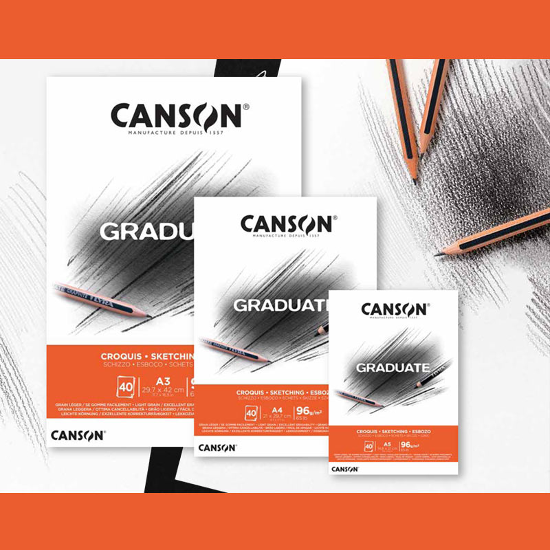 Блокноты Canson Graduate Sketching изготовлены из легкой, белой бумаги, подходящей для графических техник.