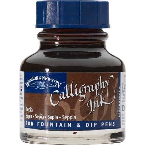 Тушь для каллиграфии (синяя крышка), для работы пером, перьевой ручкой, рапидографом и аэрографом, 30мл, сепия