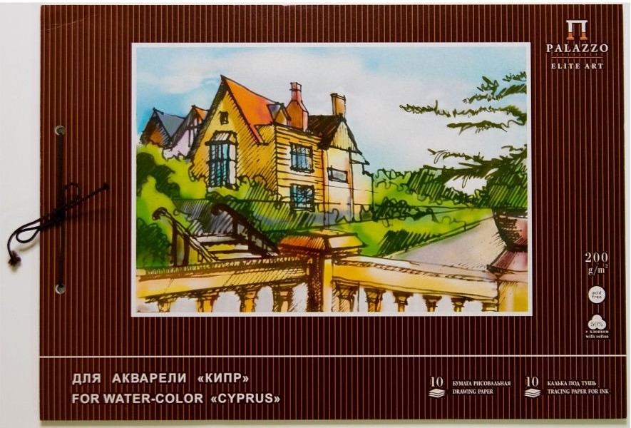 Альбом для акварели "Кипр", A3 (297*420 мм),10л. бумага с хлопком, +10л кальки.