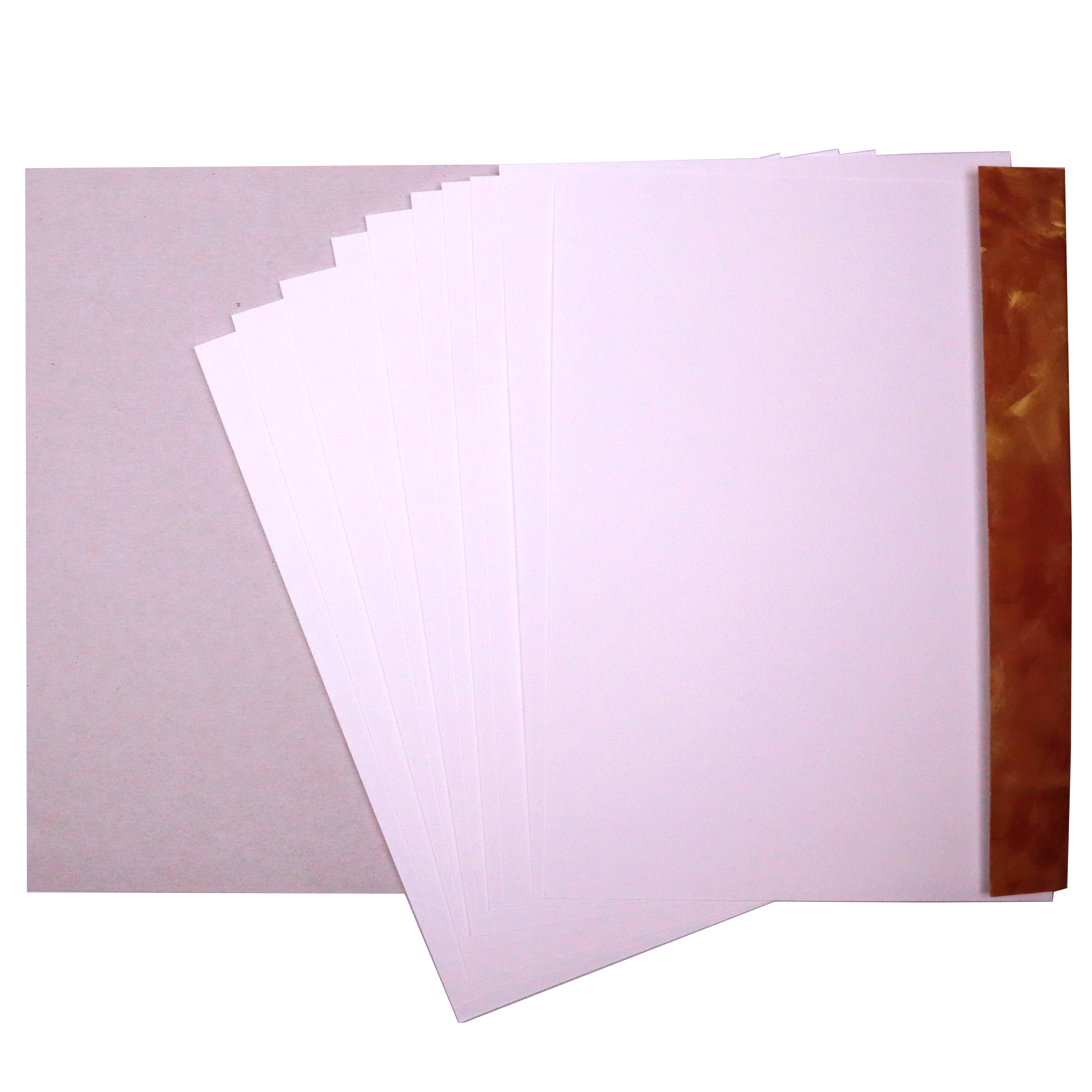 Папка состоит из 10 отдельных листов, бумага имеет зернистую поверхность.