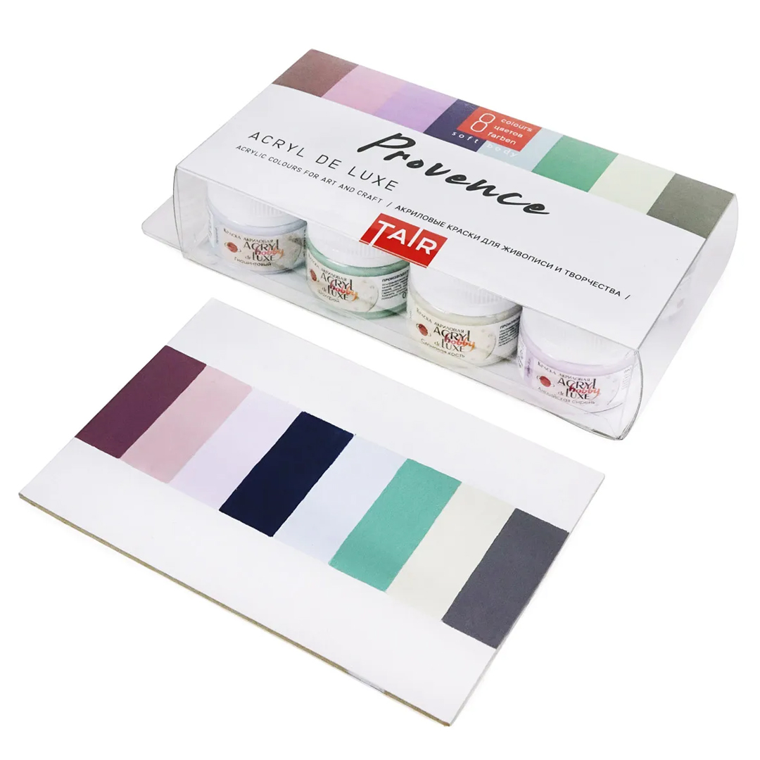 Краски «Акрил Де Люкс» — это акриловые краски приятной текучей консистенции, после высыхания образующие матовый слой. Благодаря этому свойству краски напоминают по своим характеристикам меловые. Преимущественно пастельная палитра, в сочетании со сложными глубокими оттенками потрясающе смотрятся в живописных работах. Красивая бархатистая поверхность, изысканные оттенки и возможность создавать плавные «акварельные» переходы — это только некоторые качества, за которые художники так любят эту линейку. Набор «Прованс» — это гармонично подобранные сочетания оттенков, присущие этому стилю. Светлая пастельная гамма обладает классической утончённостью.