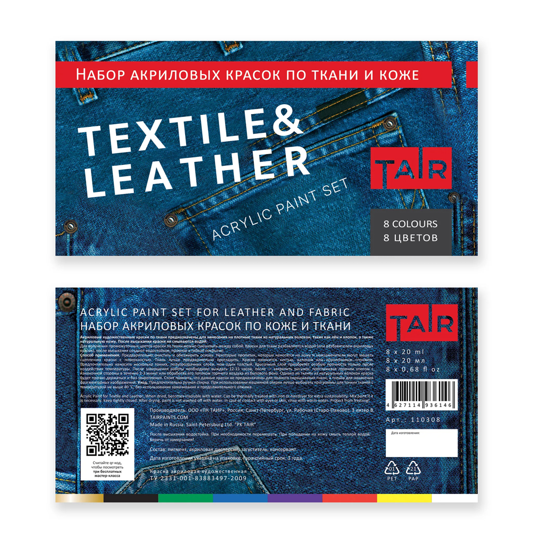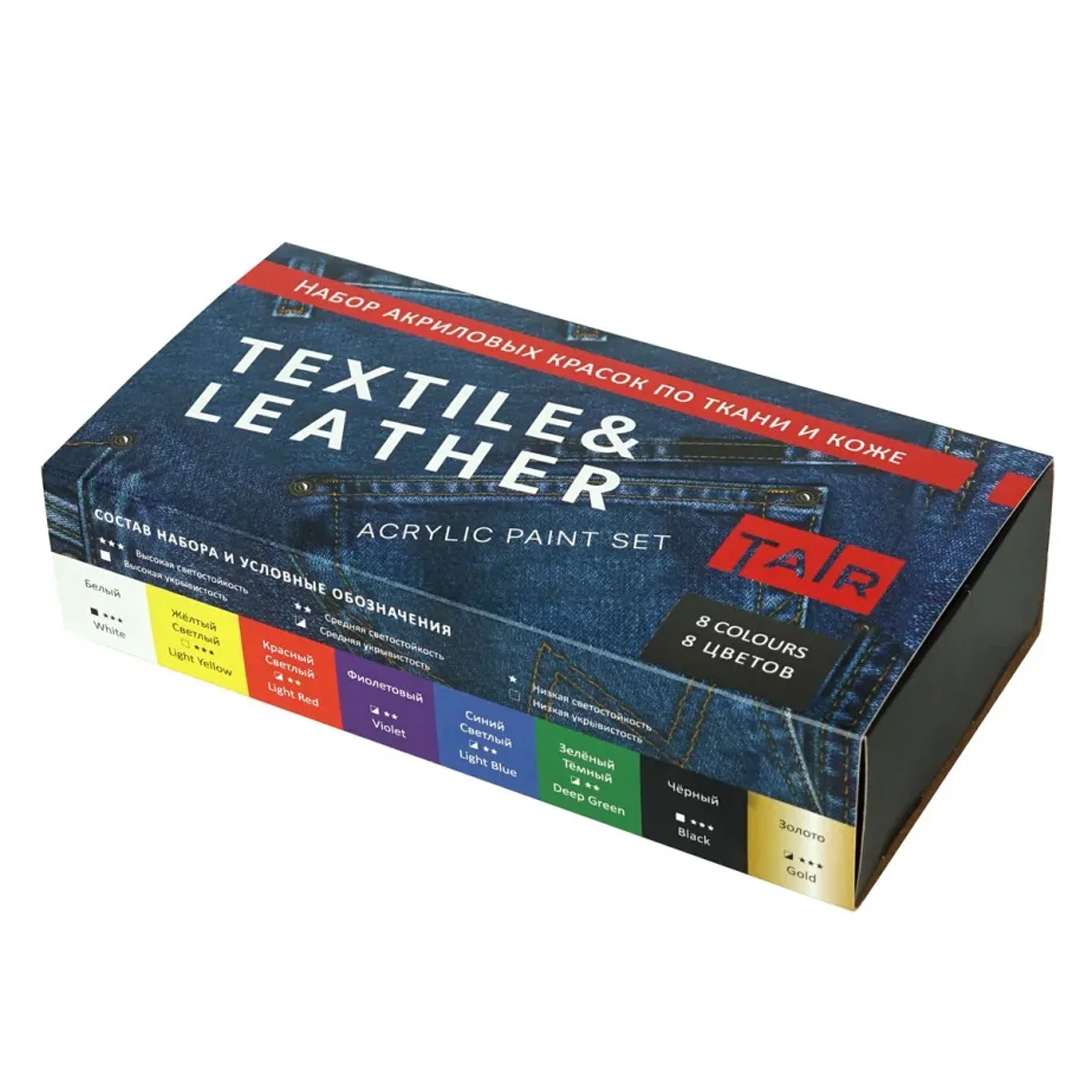 Палитра цветов в наборе (8 цветов по 20 мл): белый, жёлтый светлый, красный светлый, фиолетовый, синий светлый, зелёный тёмный, чёрный, золото. Акриловые краски, предназначенные для украшения натуральных тканей, таких как хлопок или лён, а также изделий из натуральной или искусственной кожи. Акриловые краски для росписи ткани и кожи прекрасно подходят для создания фрагментарных рисунков. Отлично держатся на поверхности кожи и текстиля, позволяют создавать уникальные изображения благодаря разнообразной цветовой палитре. Удобны в применении. Не используются для полного окрашивания тканей. Консистенция: густая, кремообразная.