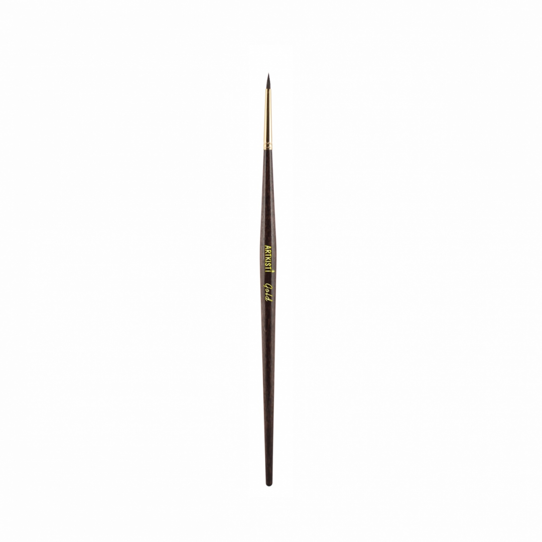 Коллекция кистей из белки и белки микс, с традиционными формами мазка. Оригинальная форма и цвет ручки, цвет ручки морилка -венге покрыта глянцевым лаком, обойма золото. Ручка короткая. Диаметр мазка соответствует номеру кисти.