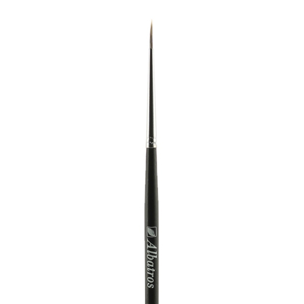 Кисти художественные из горного колонка. Цельнотянутая алюминиевая обойма, короткая, глянцевая черная ручка.