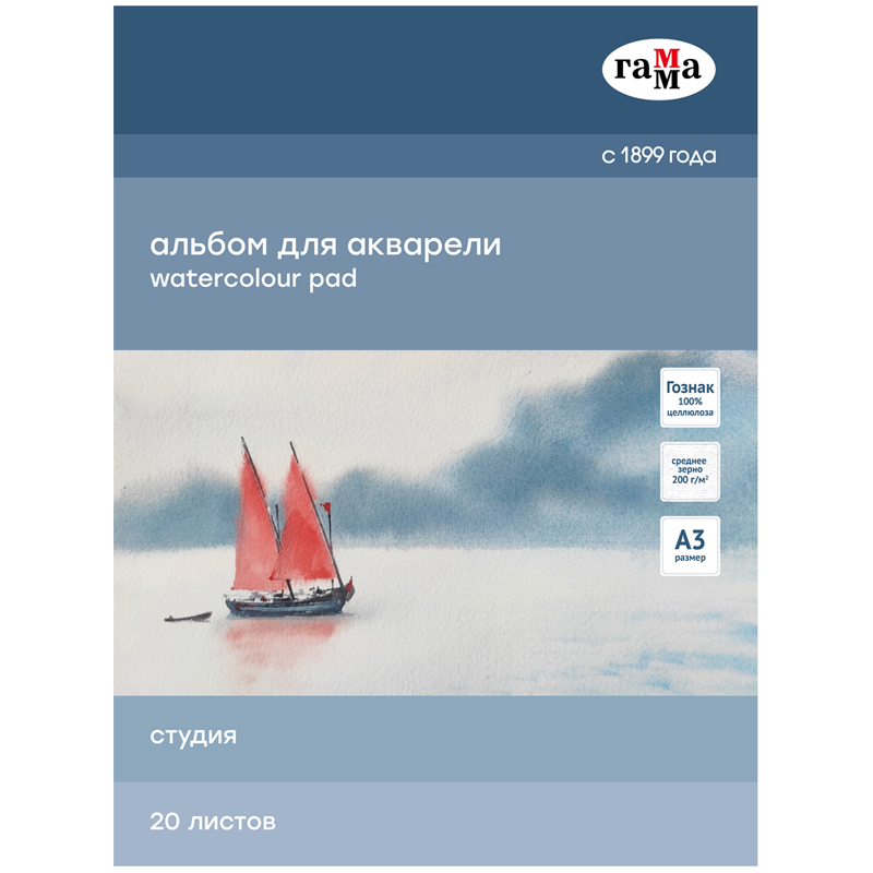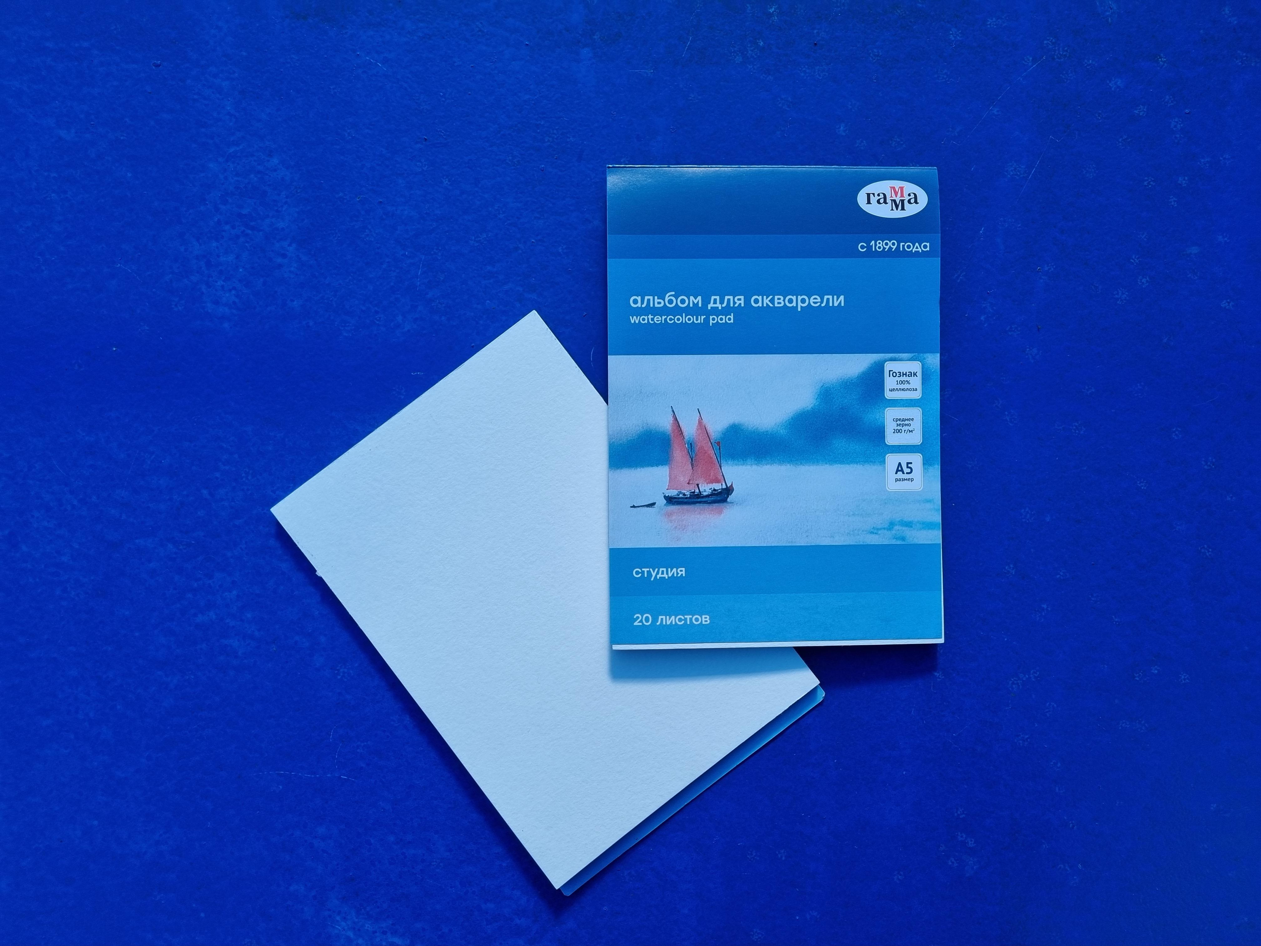 В альбоме «ГАММА» серии «Студия» используется бумага Гознак, подходящая для акварели. Листы изготовлены из 100% целлюлозы, плотностью 200г/м2.