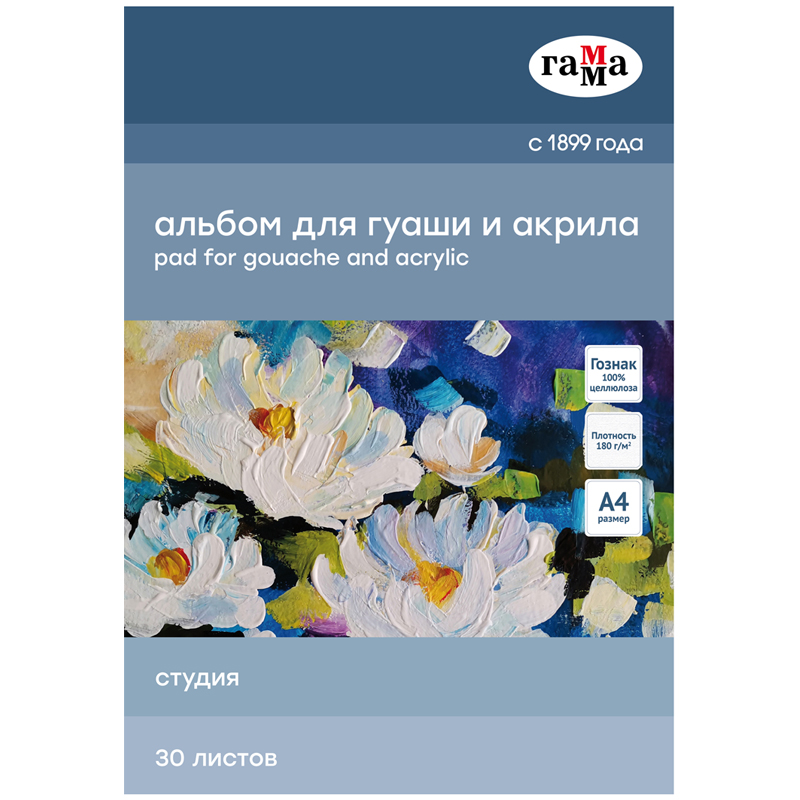 Альбом Гамма "Студия" предназначен для работ гуашевыми красками, акриловыми, а также темперой.