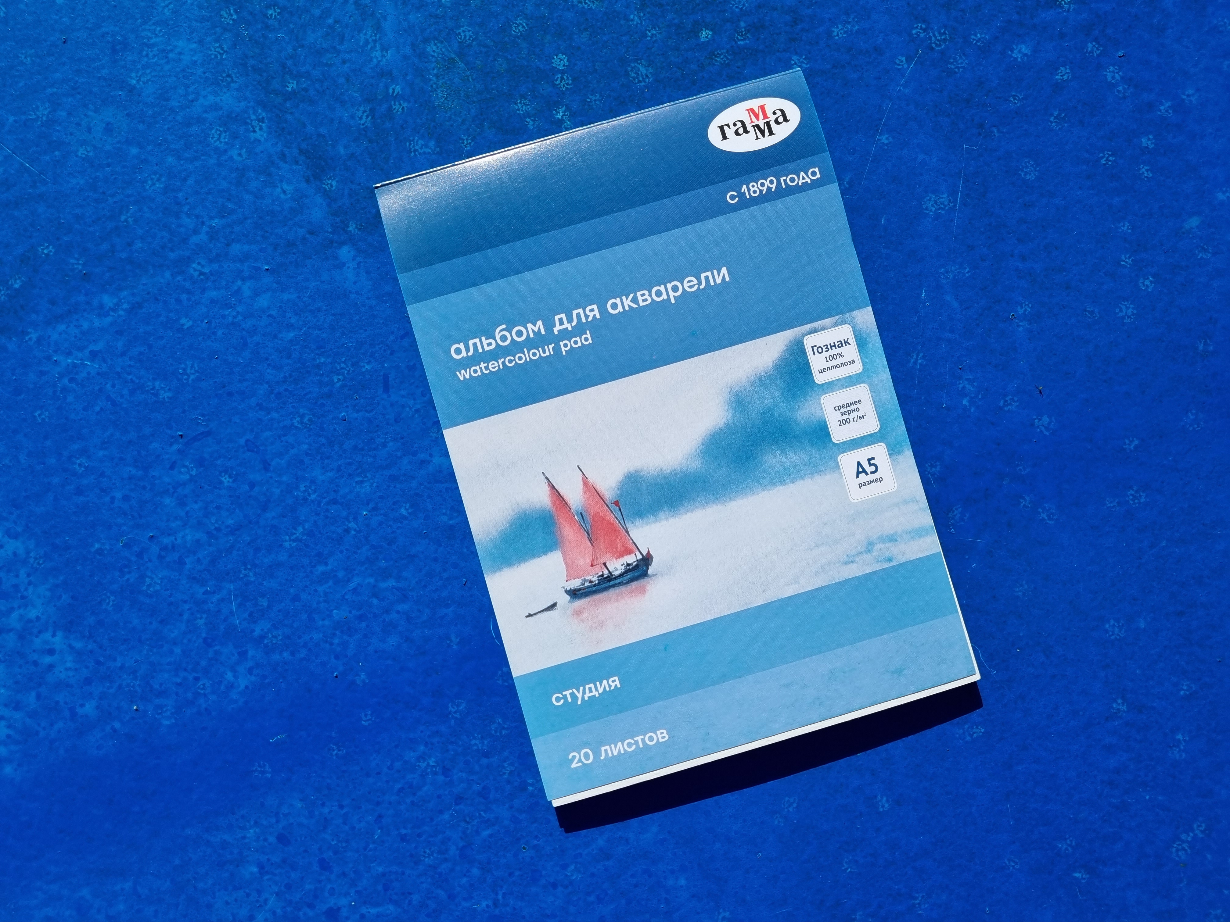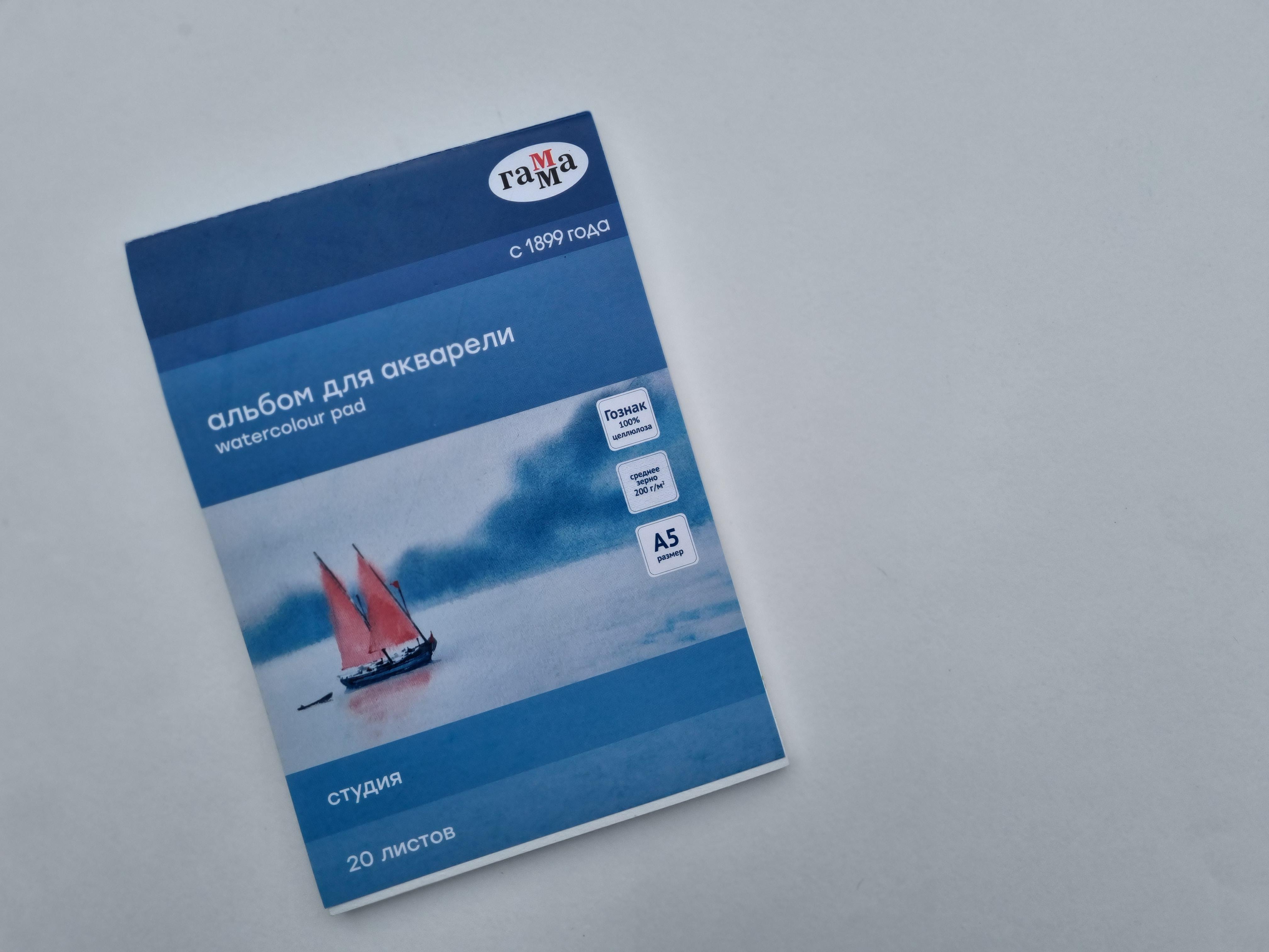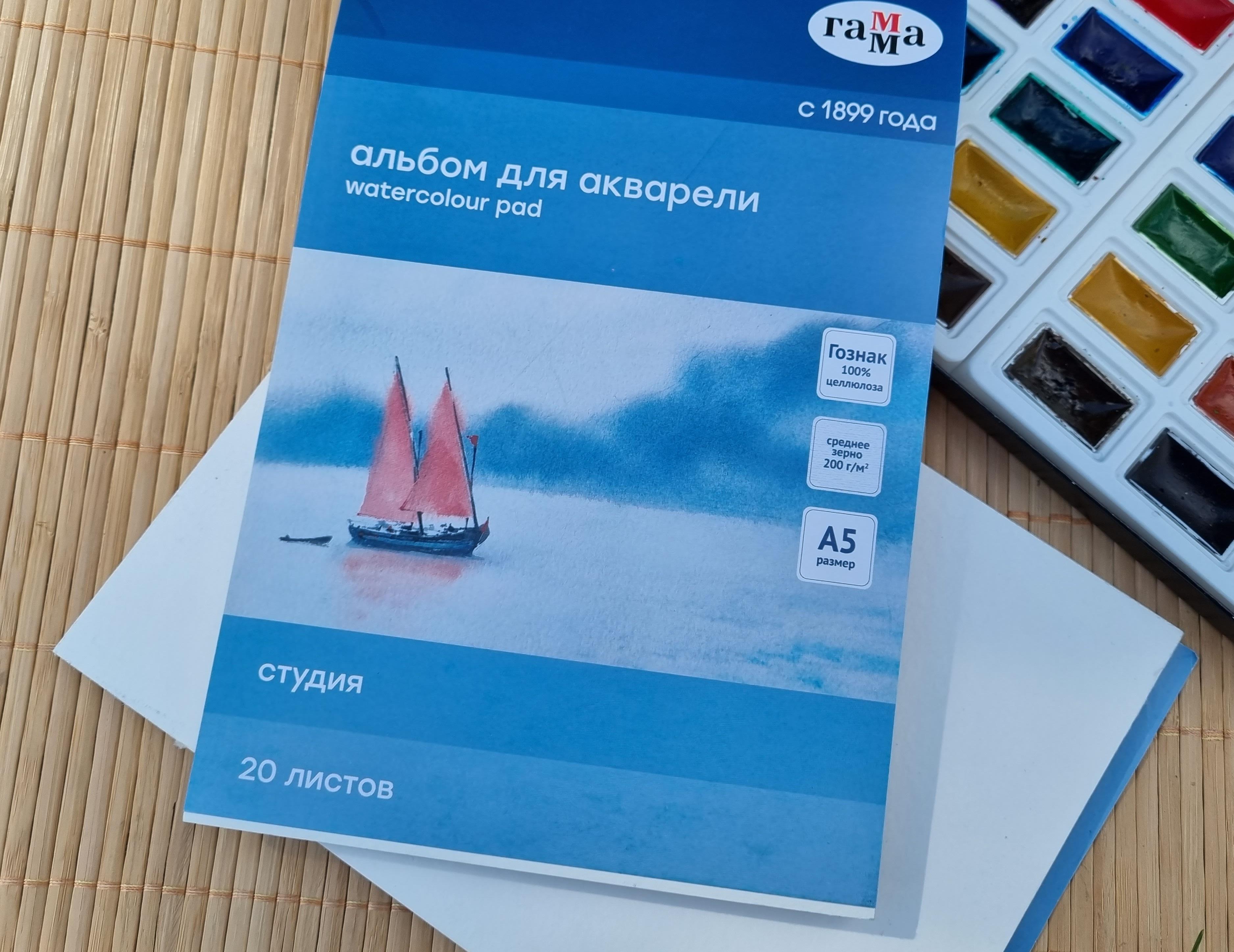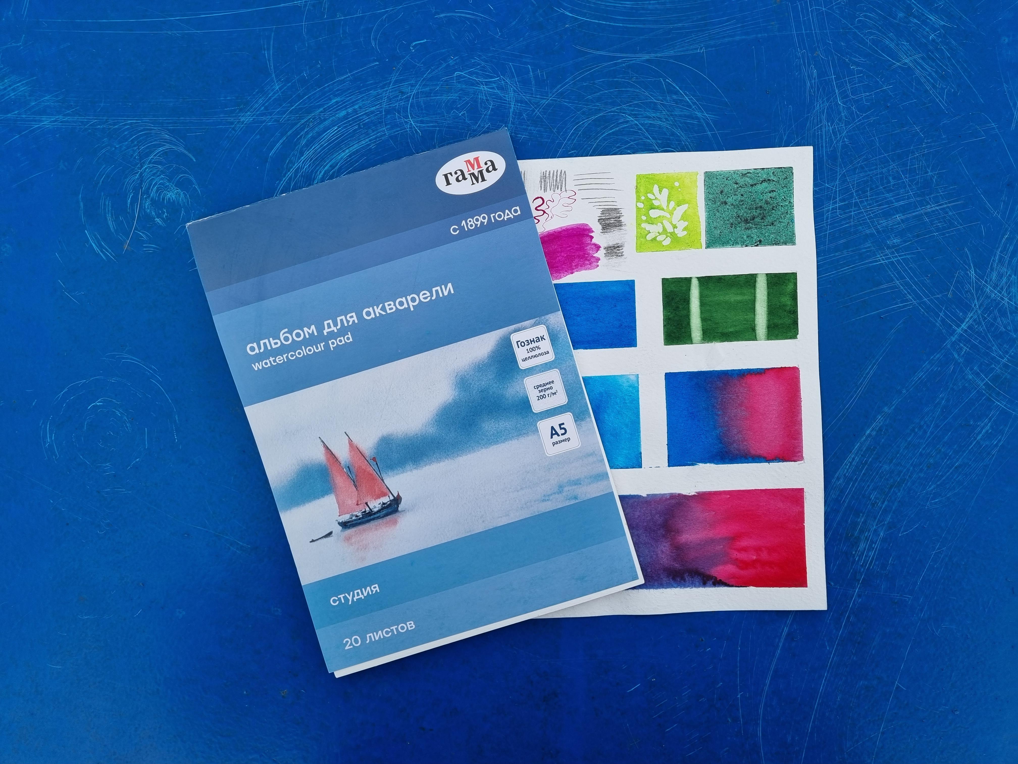 В альбоме «ГАММА» серии «Студия» используется бумага Гознак, подходящая для акварели. Листы изготовлены из 100% целлюлозы, плотностью 200г/м2.