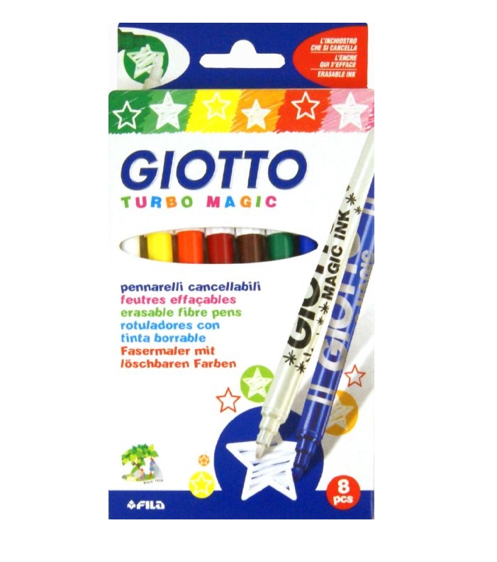 Волшебные исчезающие фломастеры из набора Giotto "Turbo Magic" - это 7 цветных фломастеров и 1 обесцвечивающий фломастер.