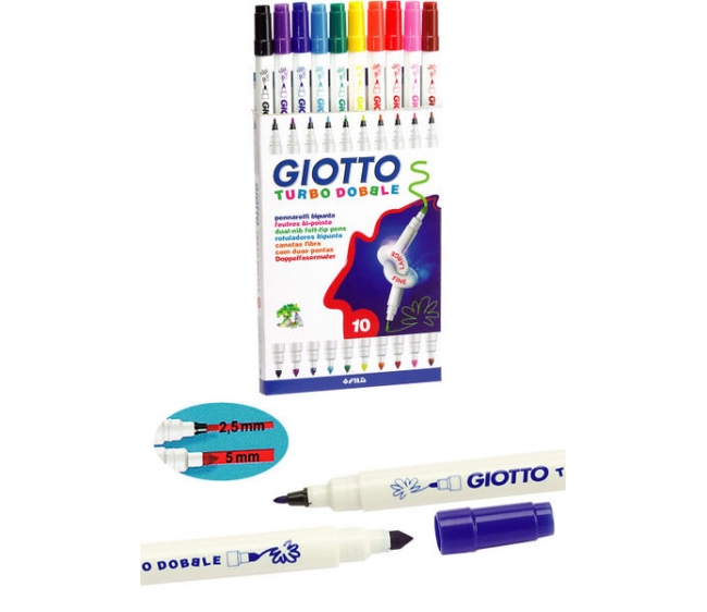 Набор двухсторонних фломастеров Giotto Turbo Dobble - это фломастеры имеющие на одном конце тонкий стержень (с толщиной линии в 2.5 мм), а на другом – толстый (с толщиной линии в 5 мм).