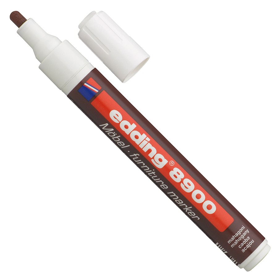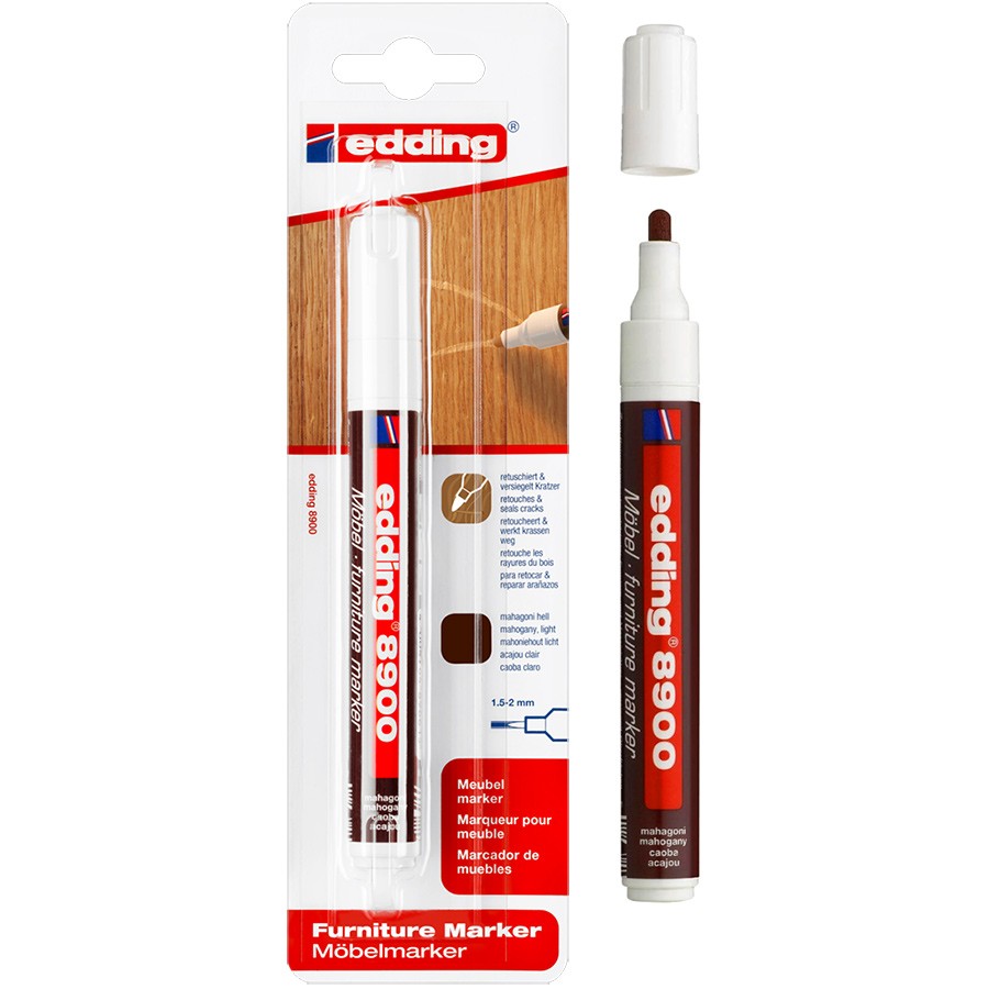 C помощью маркеров из серии Edding 8900 вы сможете самостоятельно вернуть мебели практически первоначальный вид. Маркеры разработаны для маскировки небольших повреждений и неглубоких царапин, имеют круглый наконечник шириной 1,5-2 мм и заправлены плотными непрозрачными чернилами с высокой кроющей способностью. Выпускаются в серии из 13 оттенков, соответствующих наиболее распространенным цветам мебельных изделий. Подходят также для закрашивания царапин на мебели из фанеры и ДСП. При первом использовании как следует потрясите маркер, снимите крышку и несколько раз надавите кончиком маркера на бумагу. Как только чернила заполнят весь наконечник, маркер будет готов к работе
