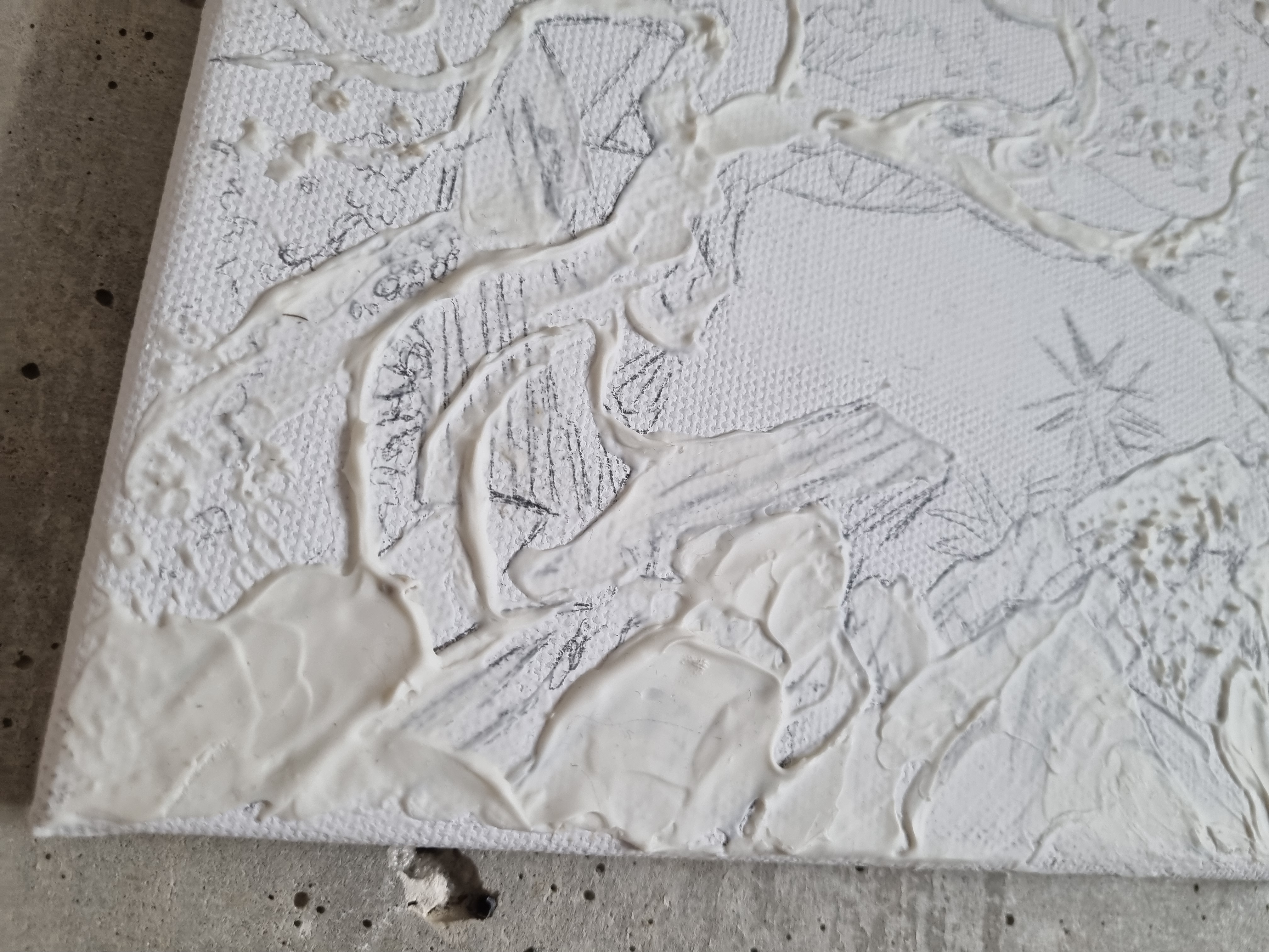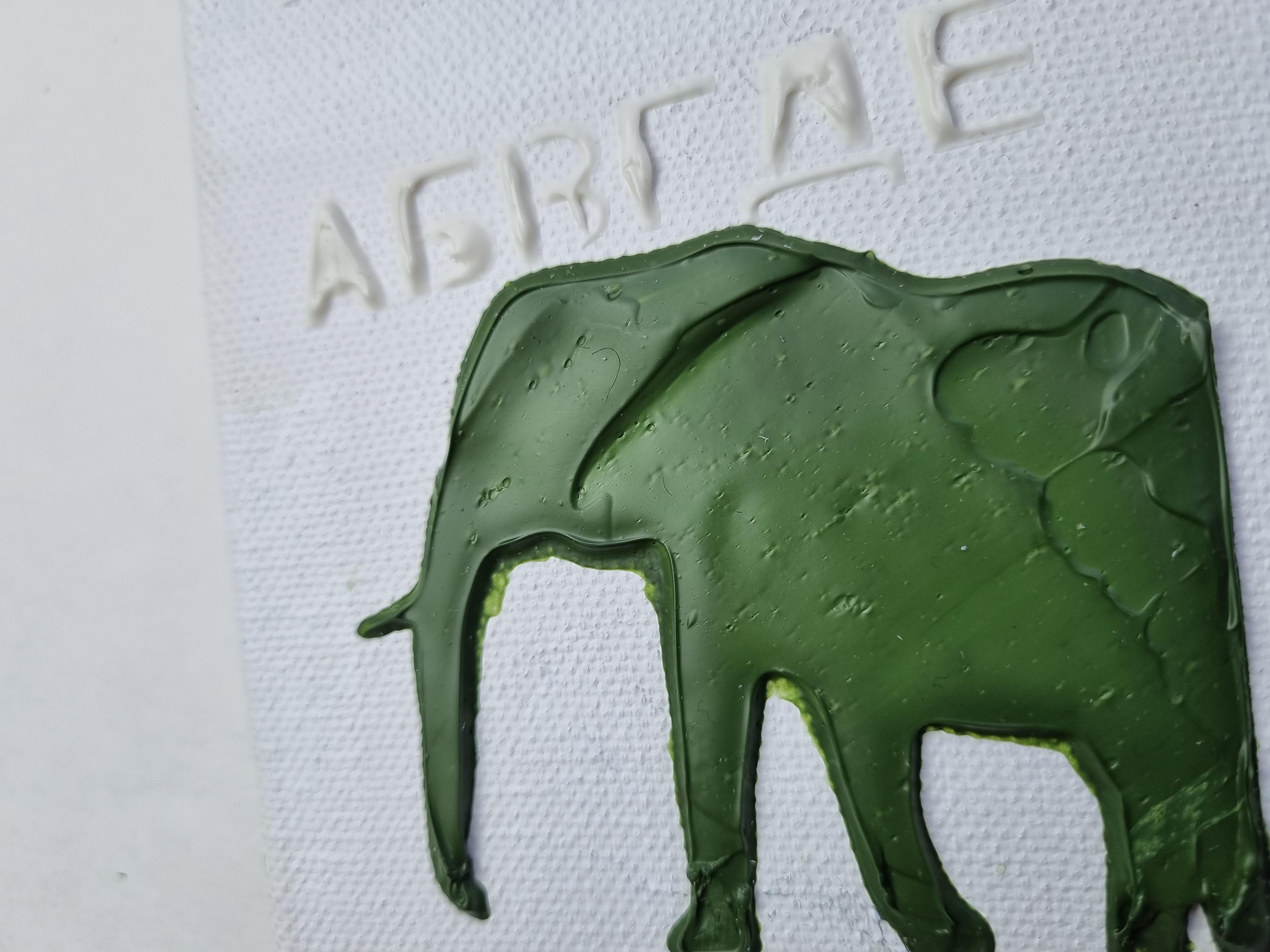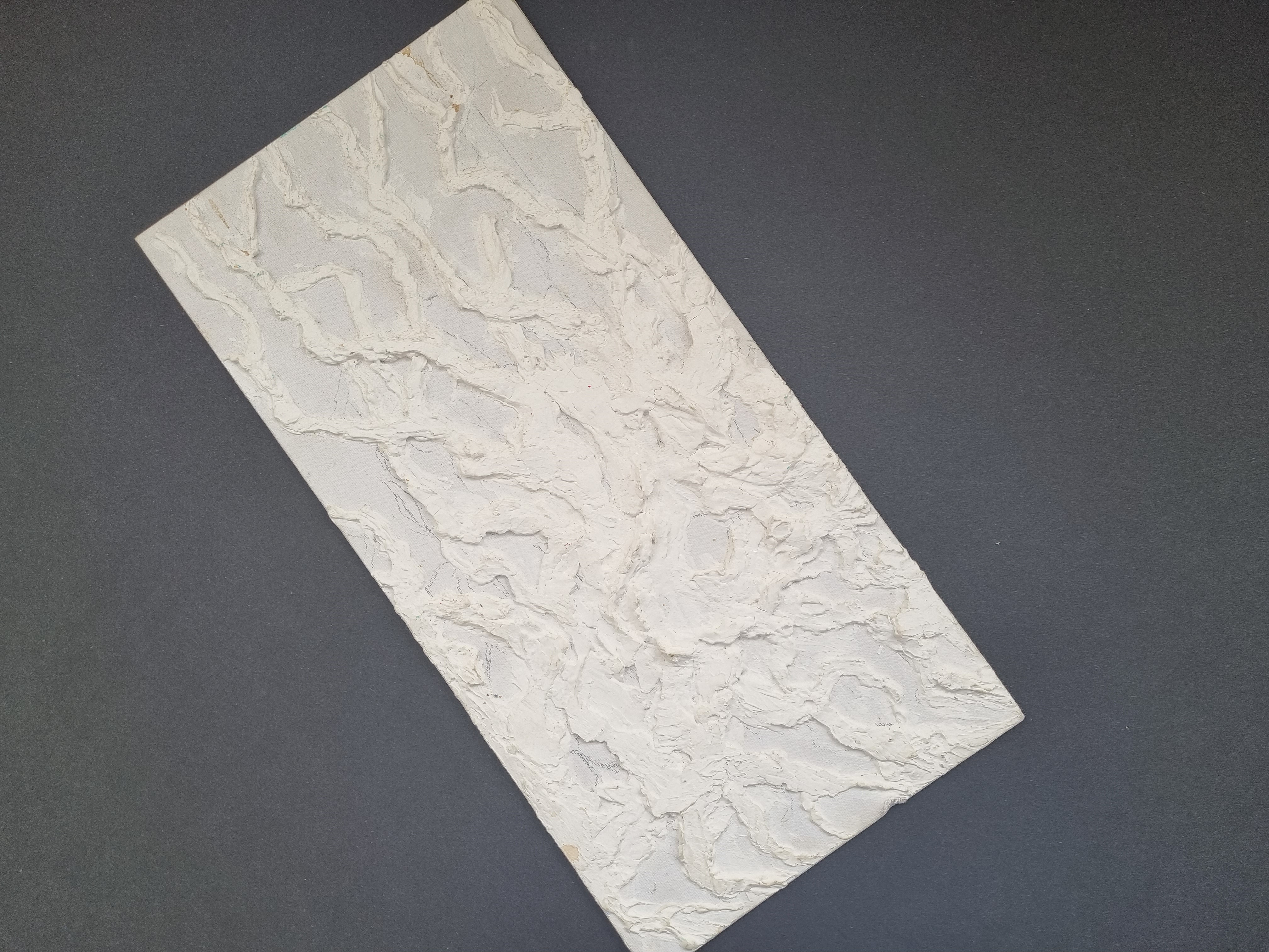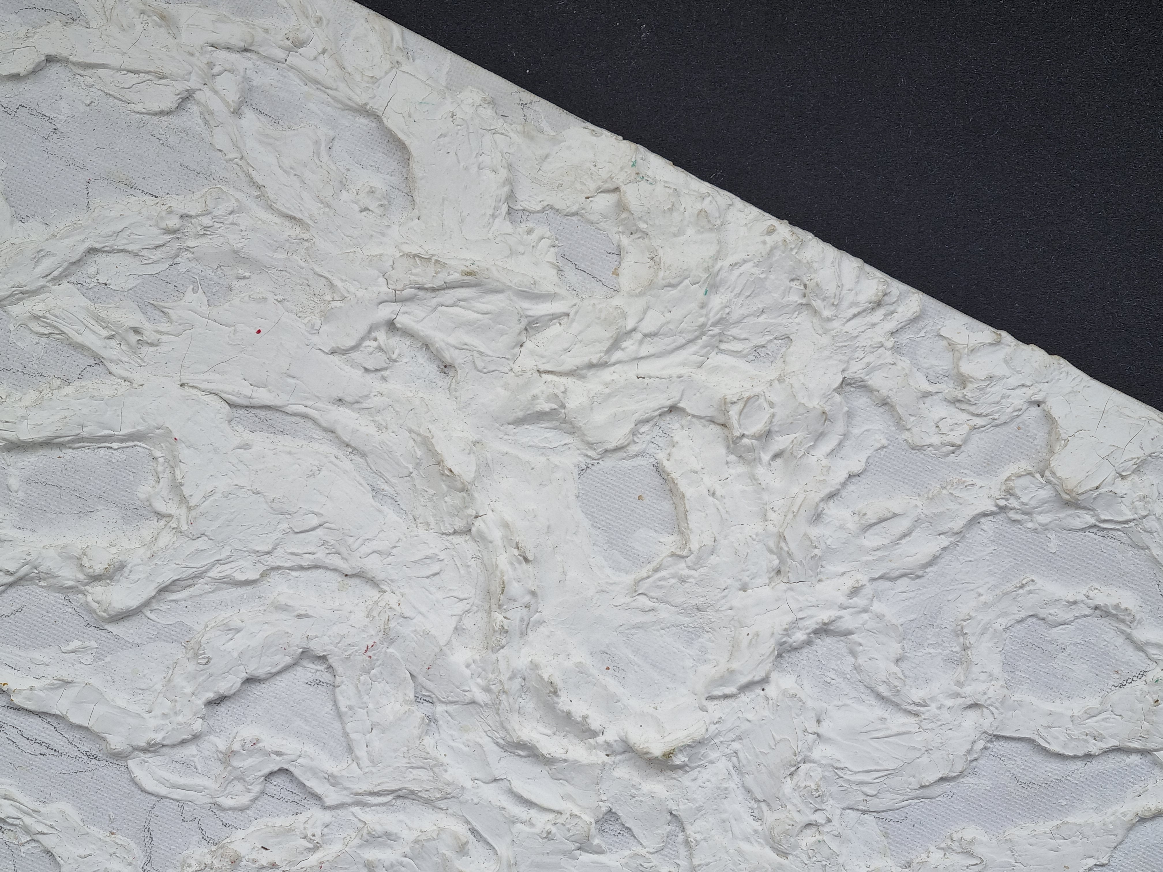 Важно отметить, что слой не трескается на холсте на подрамнике, т.е. на подвижной подложке, что очень важно и вовсе не повсеместно для такого рода материалов. При продавливании с изнанки холста, масса не расходится, образовывая трещины, а демонстрирует прекрасную адгезию с основой и свою целостность.