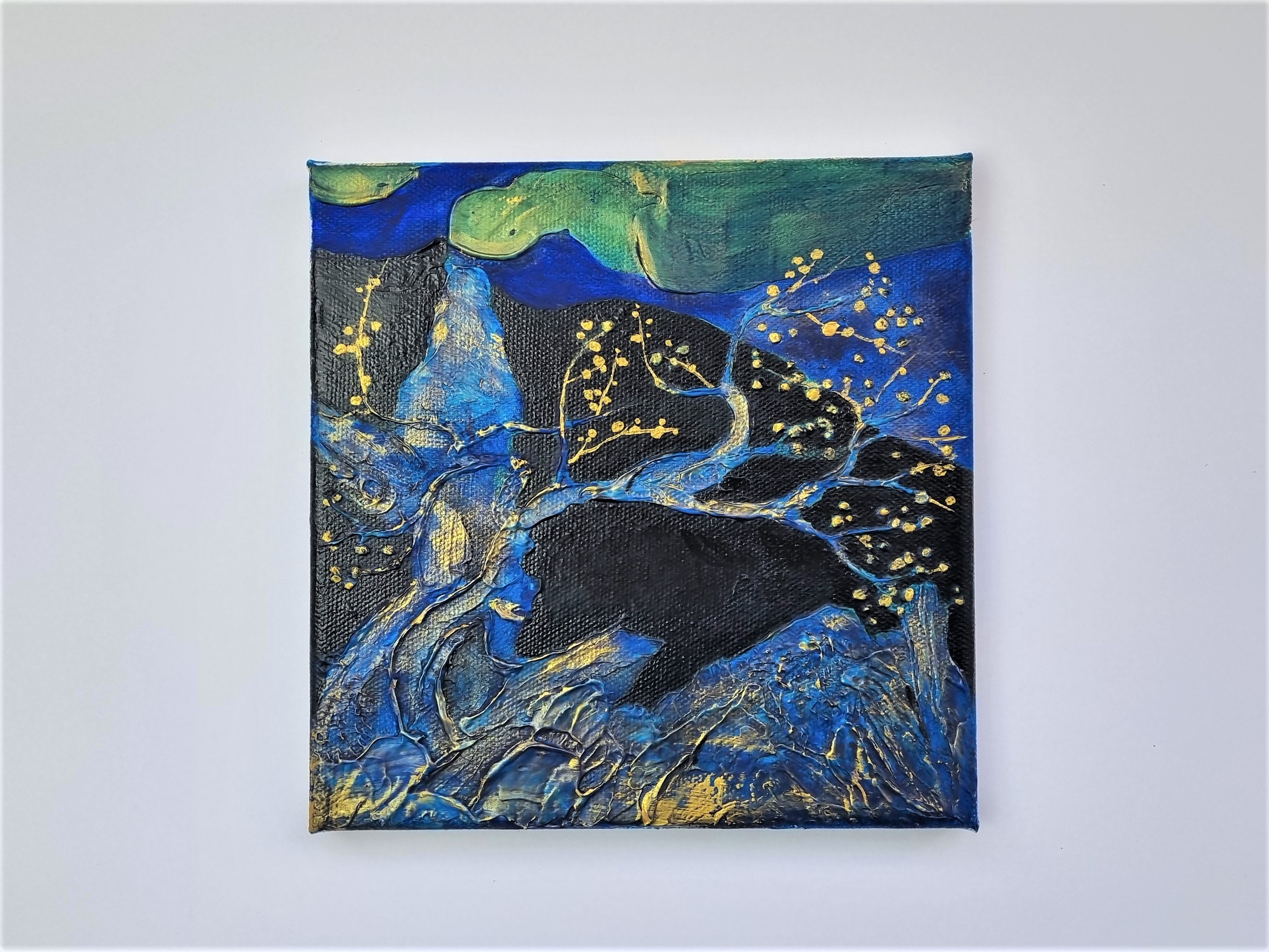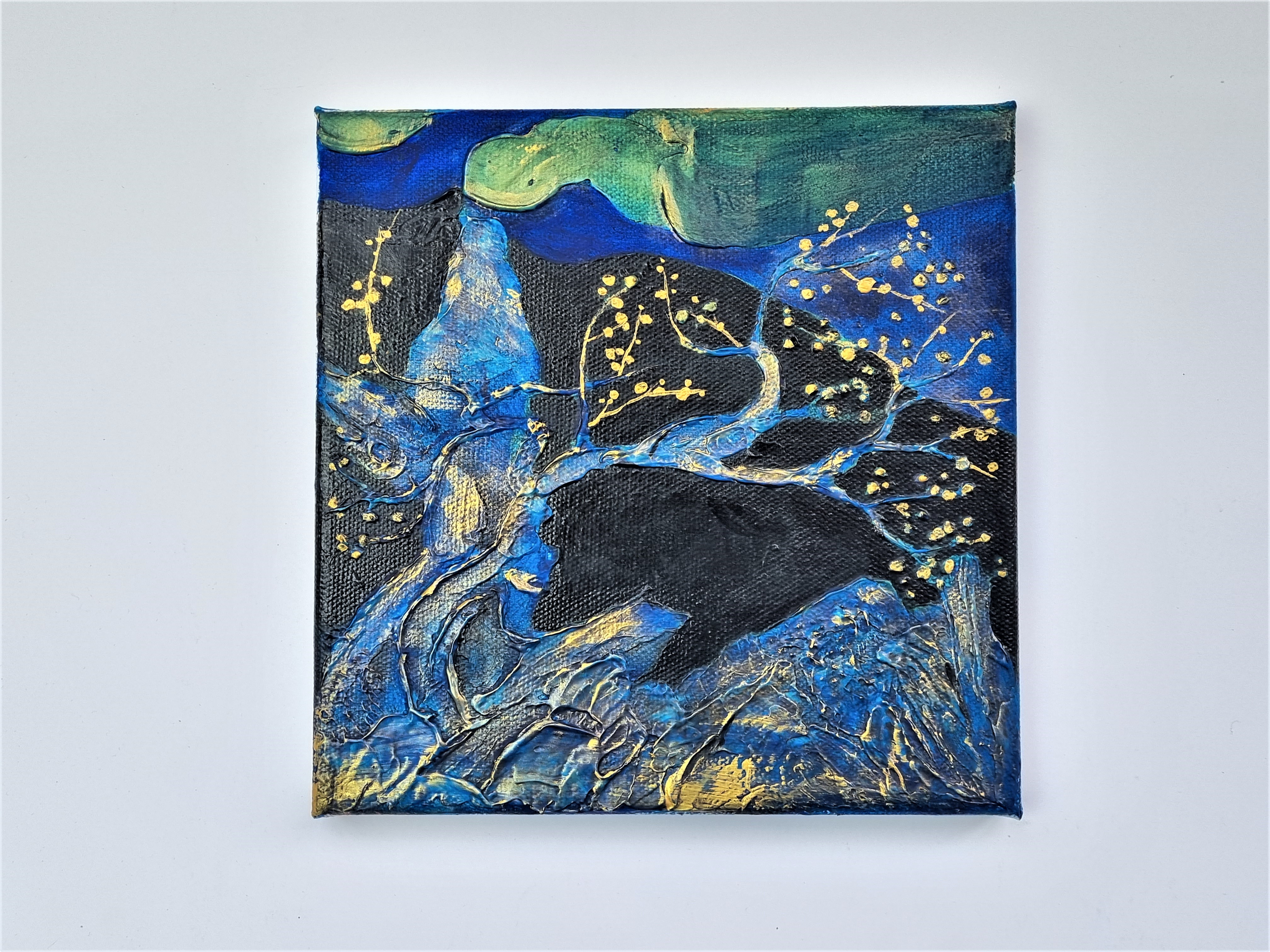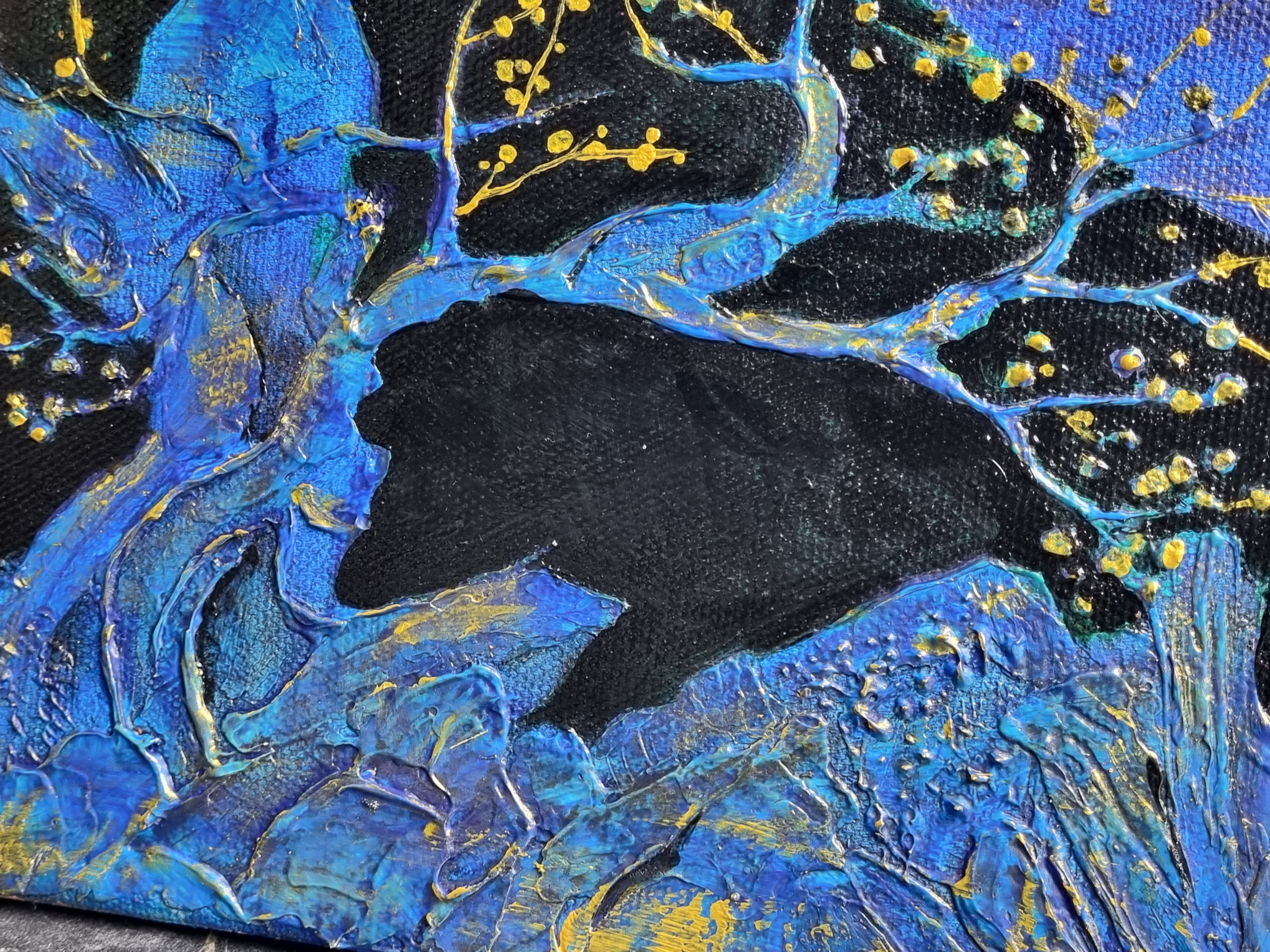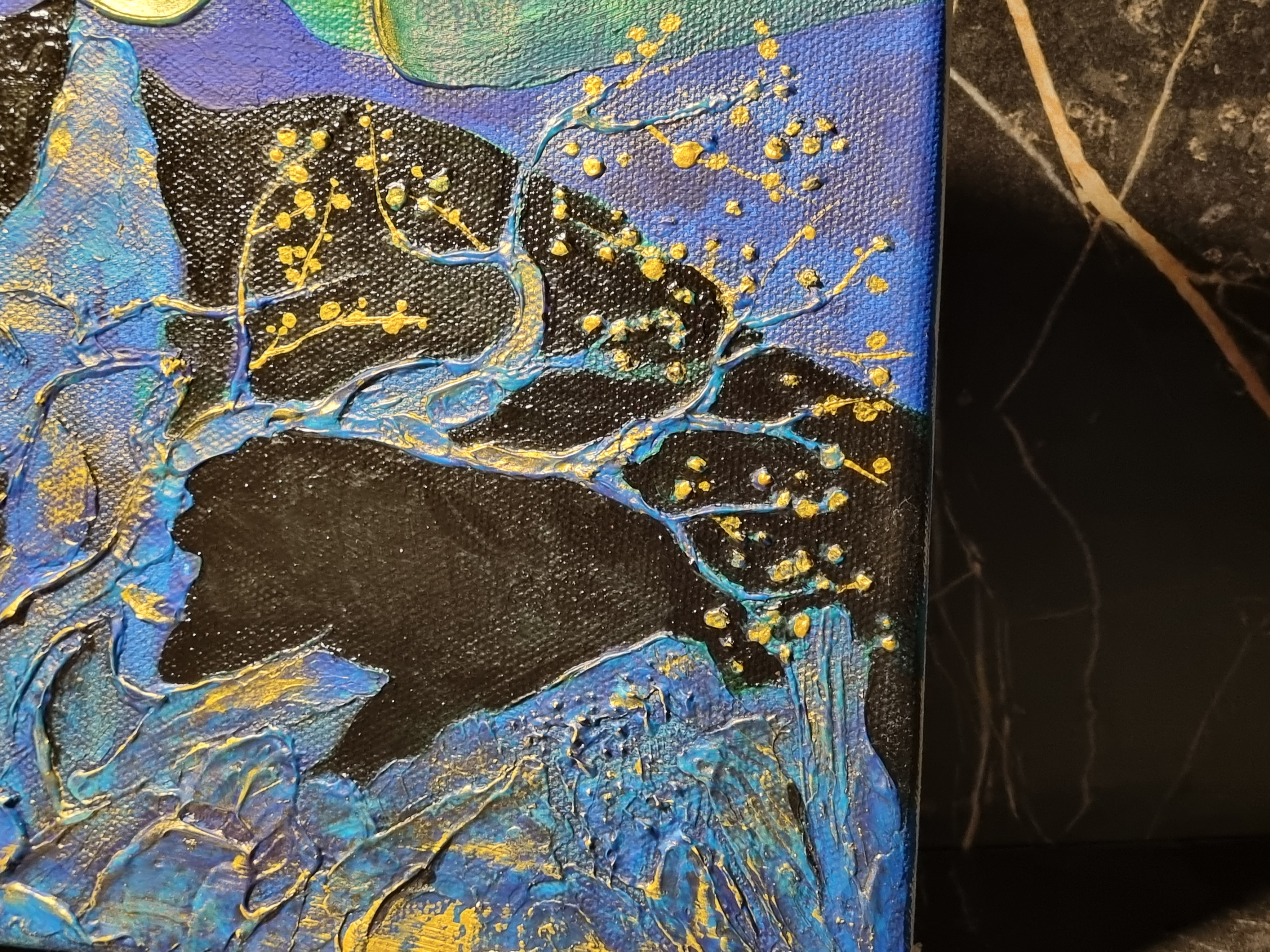 Важно отметить, что слой не трескается на холсте на подрамнике, т.е. на подвижной подложке, что очень важно и вовсе не повсеместно для такого рода материалов. При продавливании с изнанки холста, масса не расходится, образовывая трещины, а демонстрирует прекрасную адгезию с основой и свою целостность.