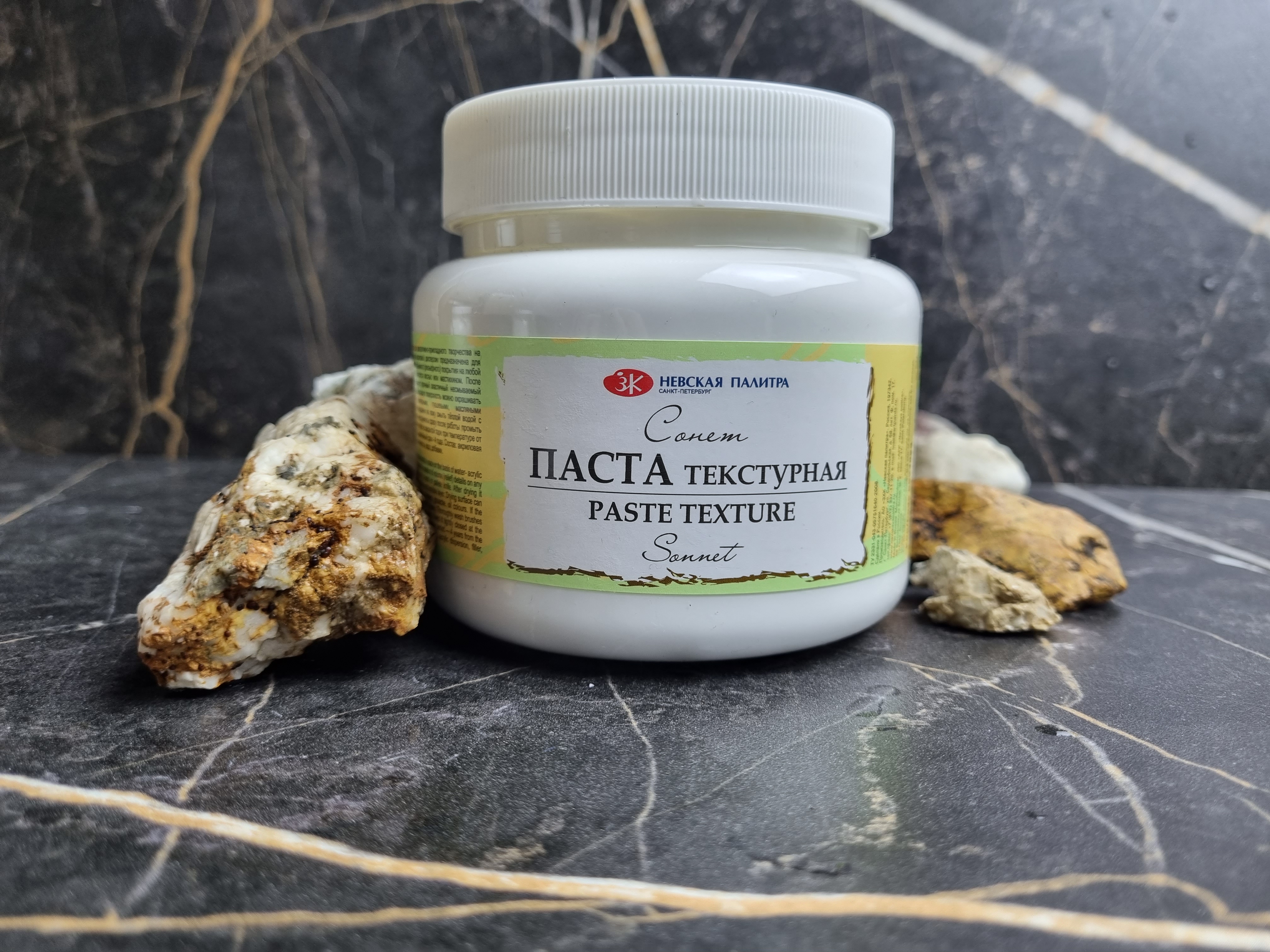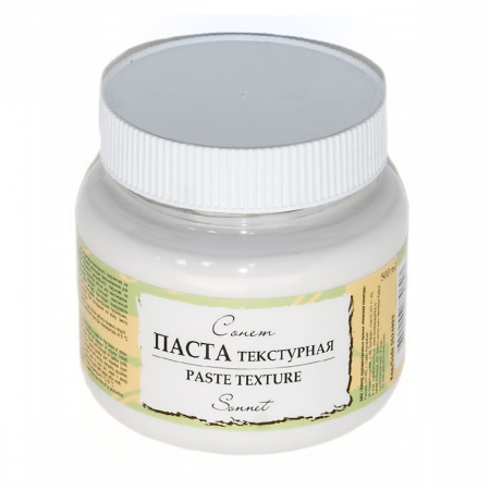 Белая структурная паста "Сонет" используется для создания различных объемных эффектов на пластике, дереве, стекле, металле, керамике и стекле.