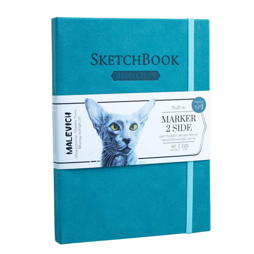 Скетчбук для маркеров, двусторонняя бумага 220г/м, 15х21 см, 40 л, бирюзовый