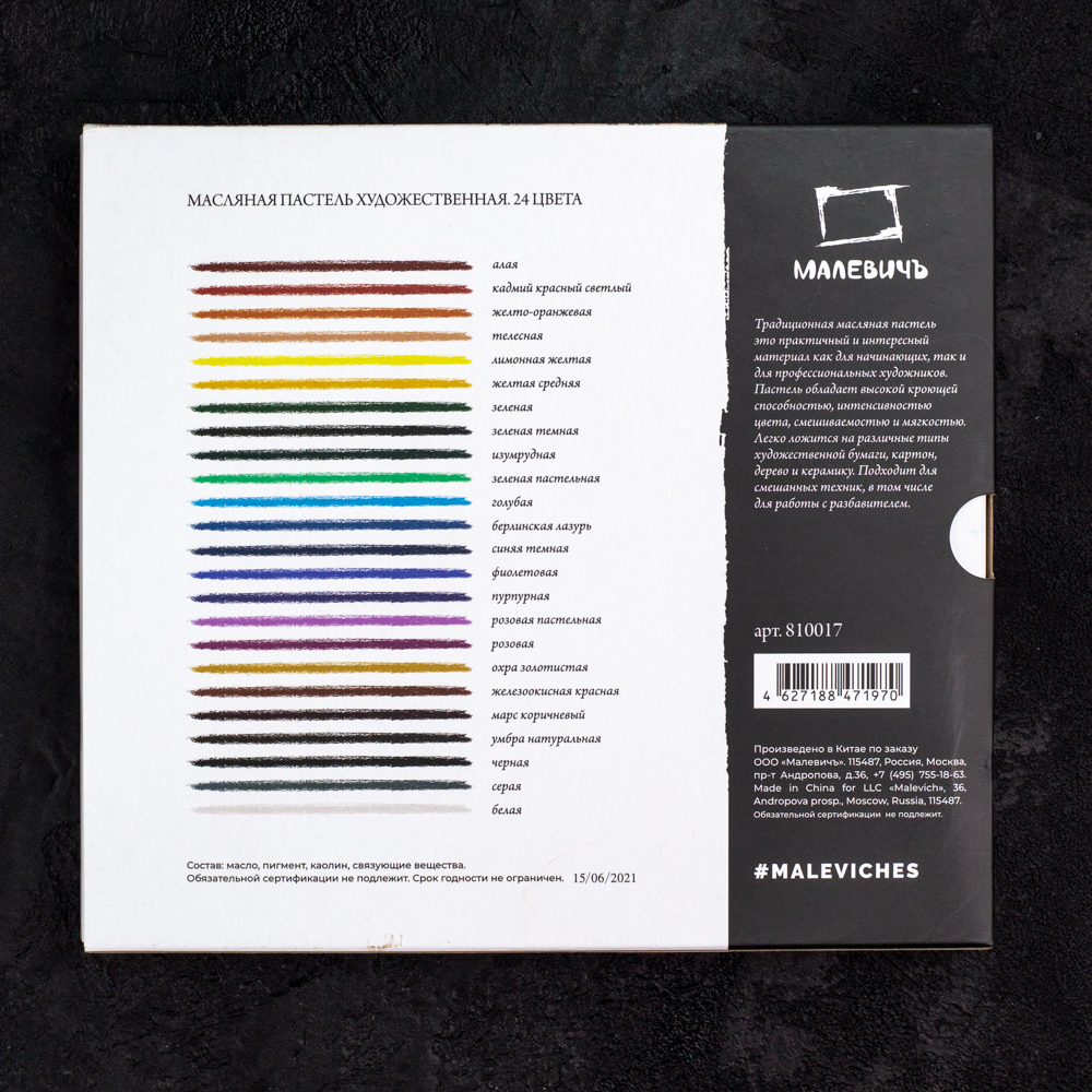 Пастель обладает высокой кроющей способностью, интенсивностью цвета, смешиваемостью и мягкостью. Подходит для смешанных техник, в том числе и для работы с разбавителем.