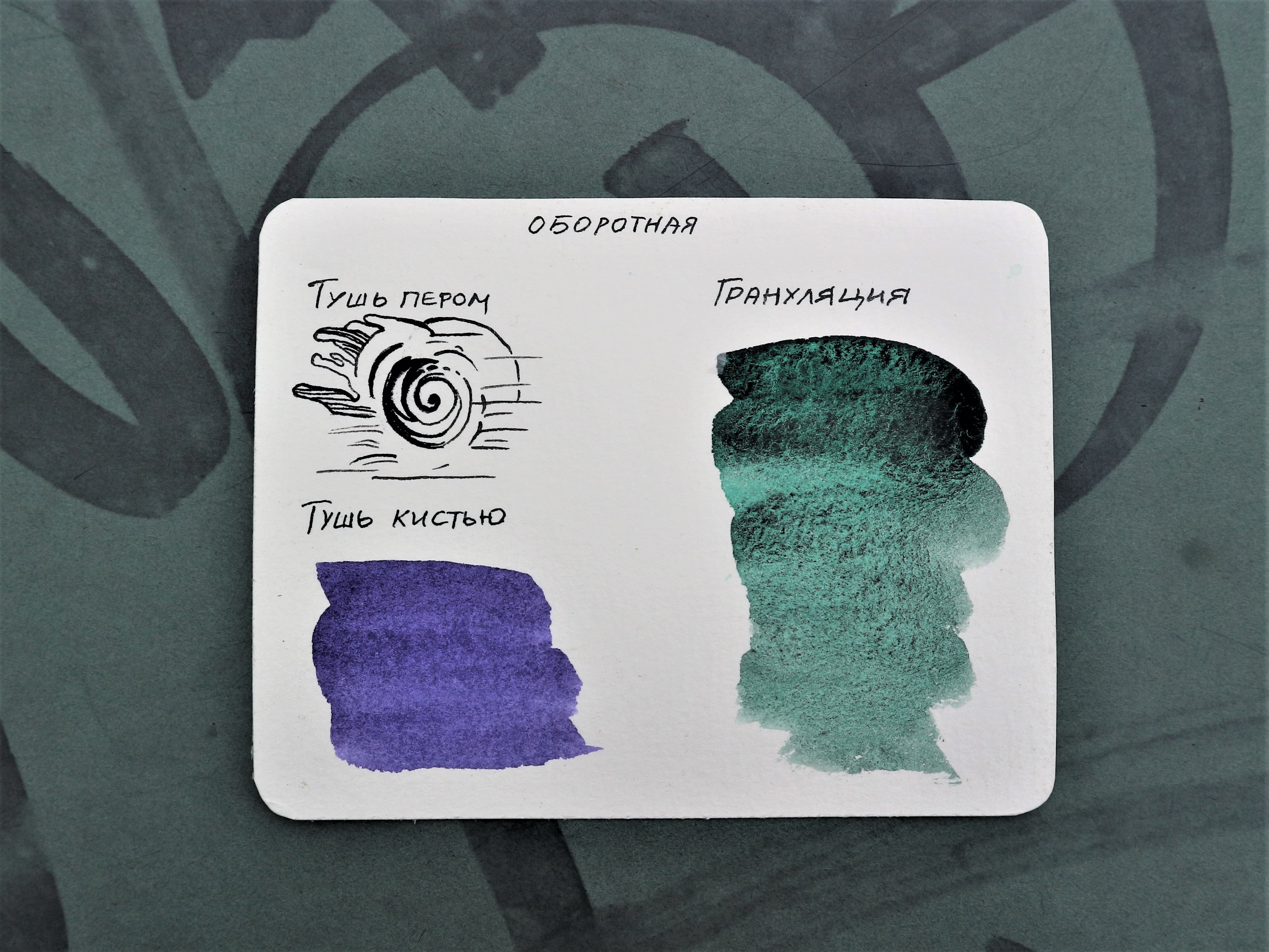 Тушь кистью - без нареканий. Никаких следов протекания на обратную сторону листа.