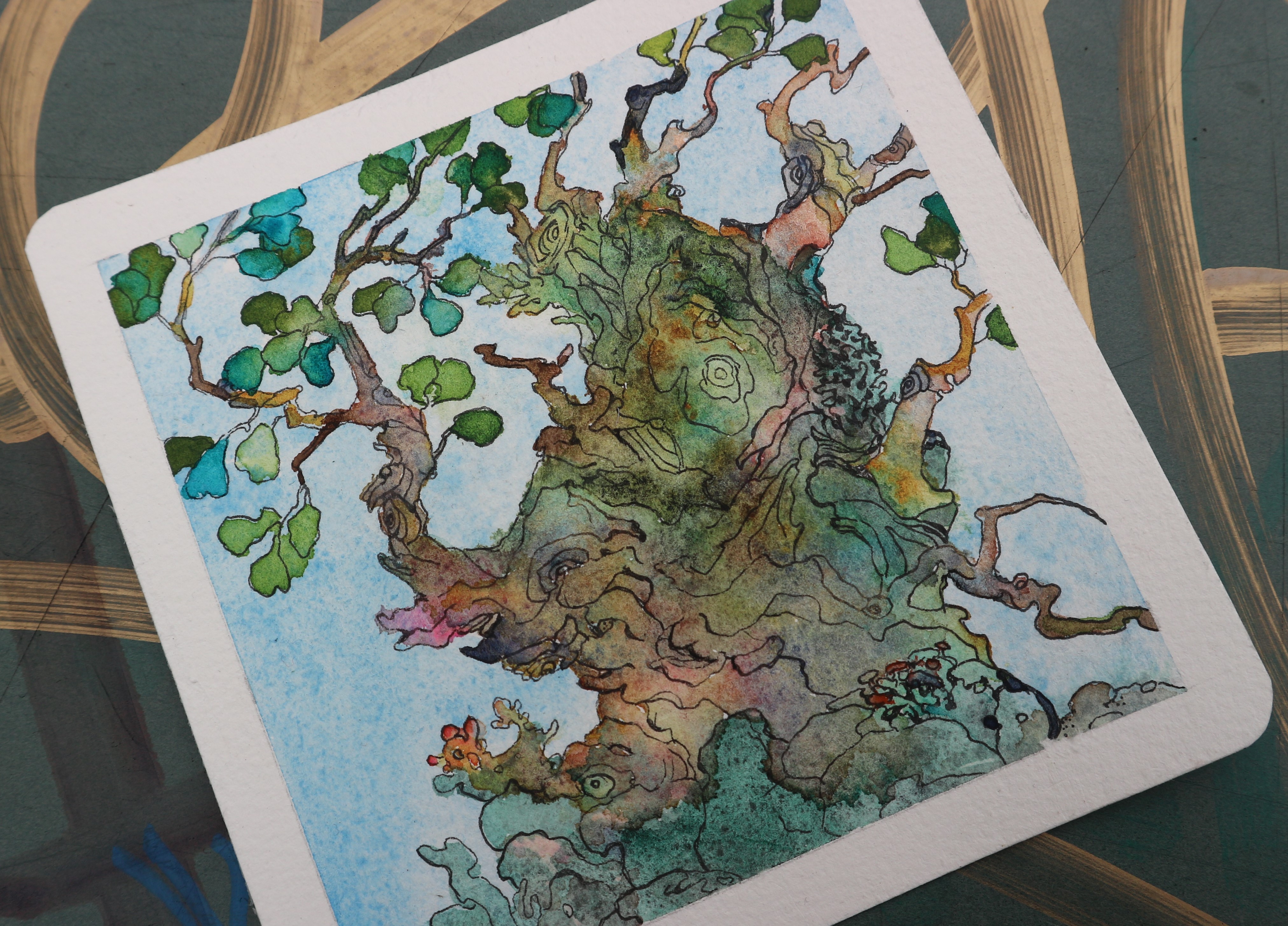 Мокрым-по-мокрому (wet-on wet) краска самораспределяется довольно хаотическими пятнами, но не по большой площади.