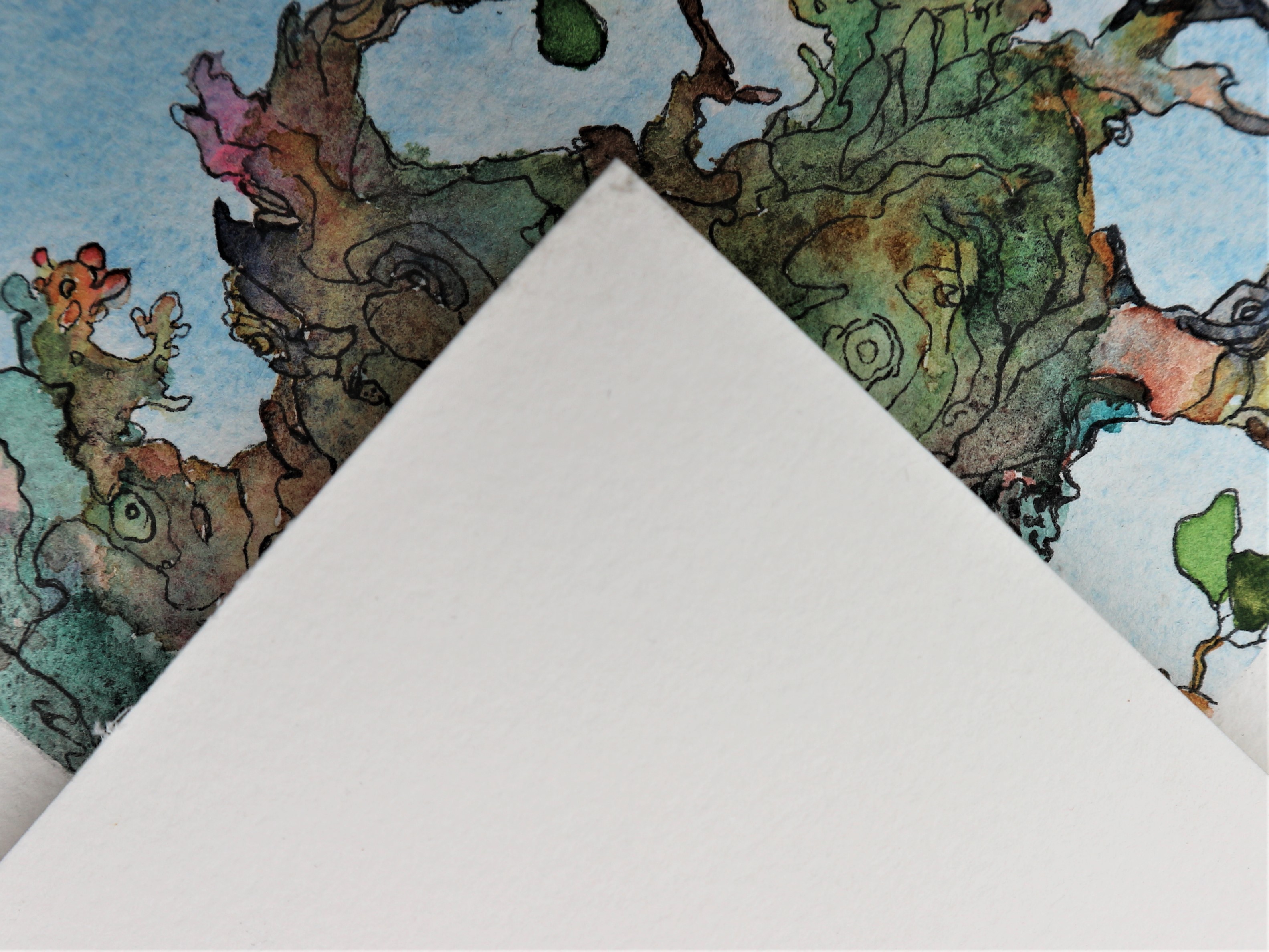 Как при заливке, так и при смешении, пигмент может ложиться неравномерно. На такой бумаге будет неплохо смотреться акварель и техники, где не нужно равномерное распределение, а, например, заливка гранулирующими оттенками во влажной среде.