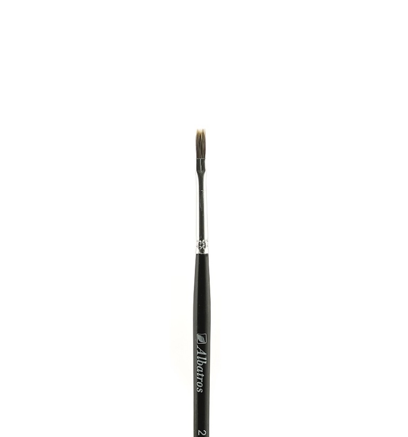 Кисти художественные из горного колонка. Цельнотянутая алюминиевая обойма, короткая, глянцевая черная ручка.