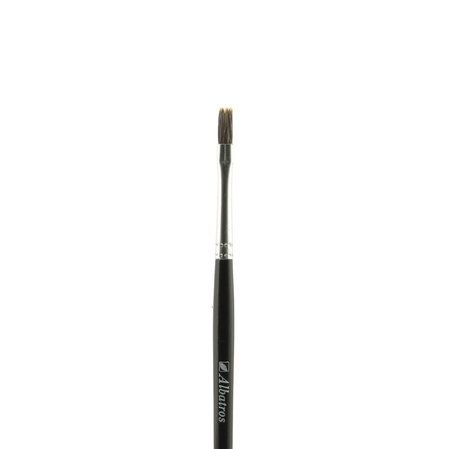 Кисти художественные из горного колонка. Цельнотянутая алюминиевая обойма, короткая, глянцевая черная ручка.