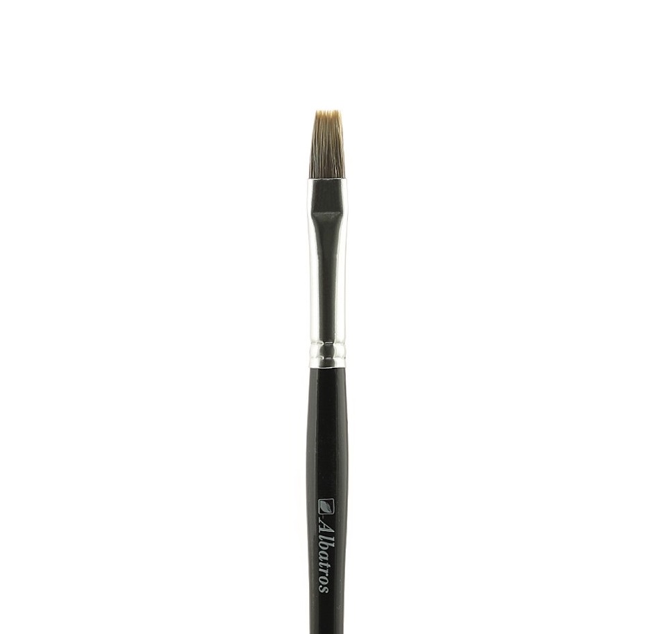 Кисти художественные из горного колонка. Цельнотянутая алюминиевая обойма, короткая, глянцевая черная ручка.
