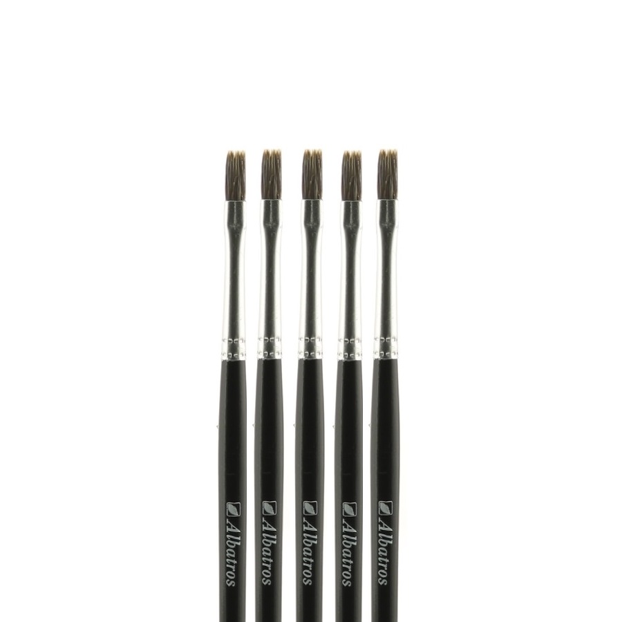 Кисти художественные из горного колонка. Цельнотянутая алюминиевая обойма, короткая, глянцевая черная ручка.