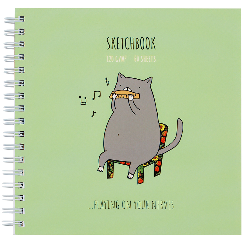Скетчбук MESHU "Harmonicat", 60л,15x15см, на гребне, 120г/м2, выборочный лак, Soft touch