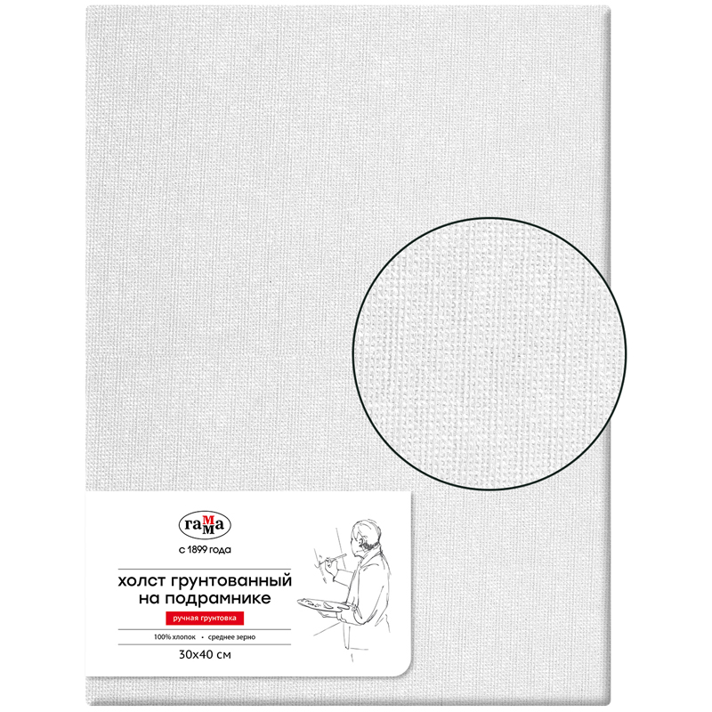 Холст на подрамнике ручной грунтовки, 30x40см, 100% хлопок, среднее зерно, масляный грунт
