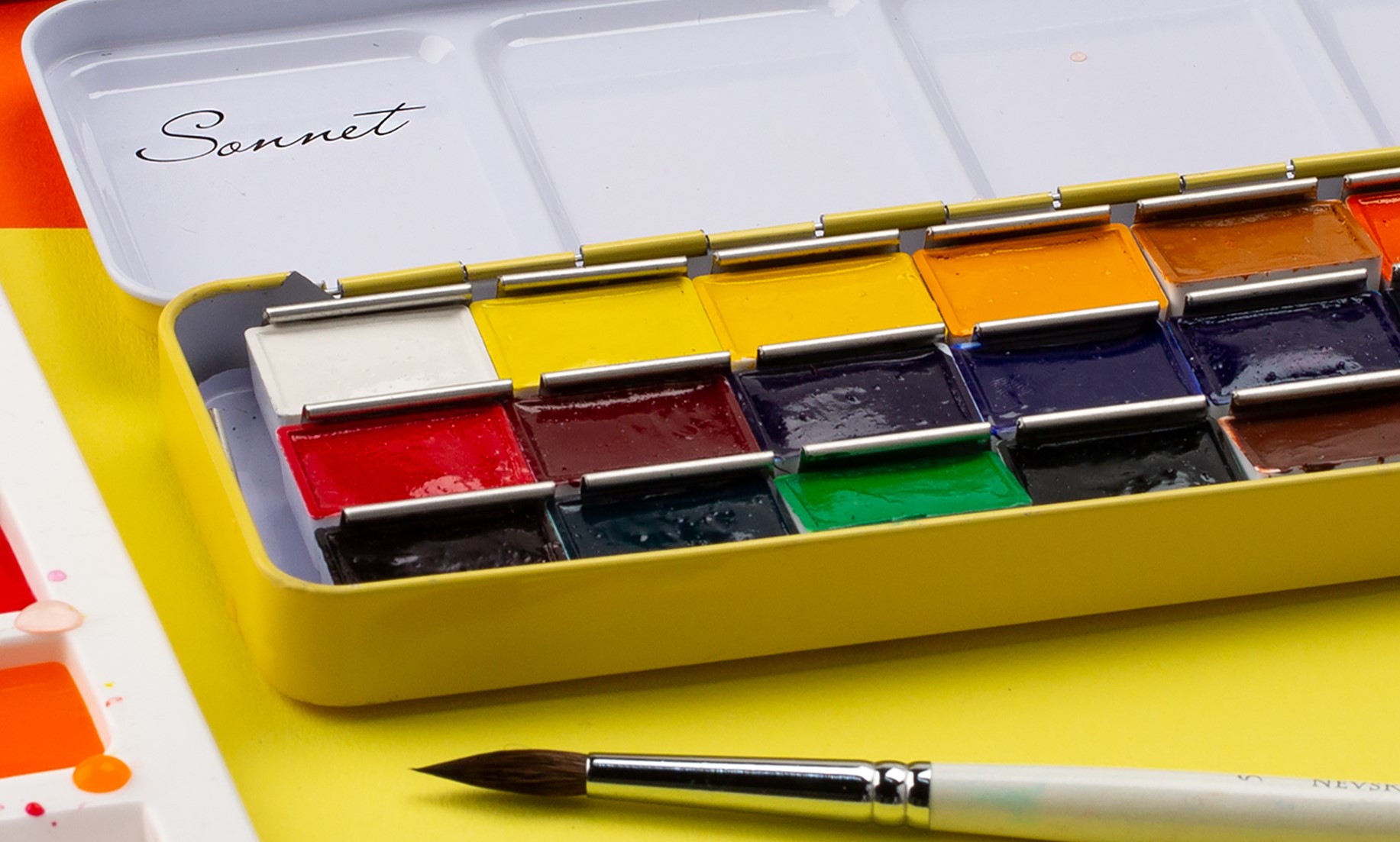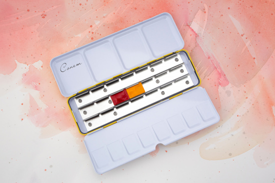 Пенал для акварели на 21 кювету, металл, жёлтый