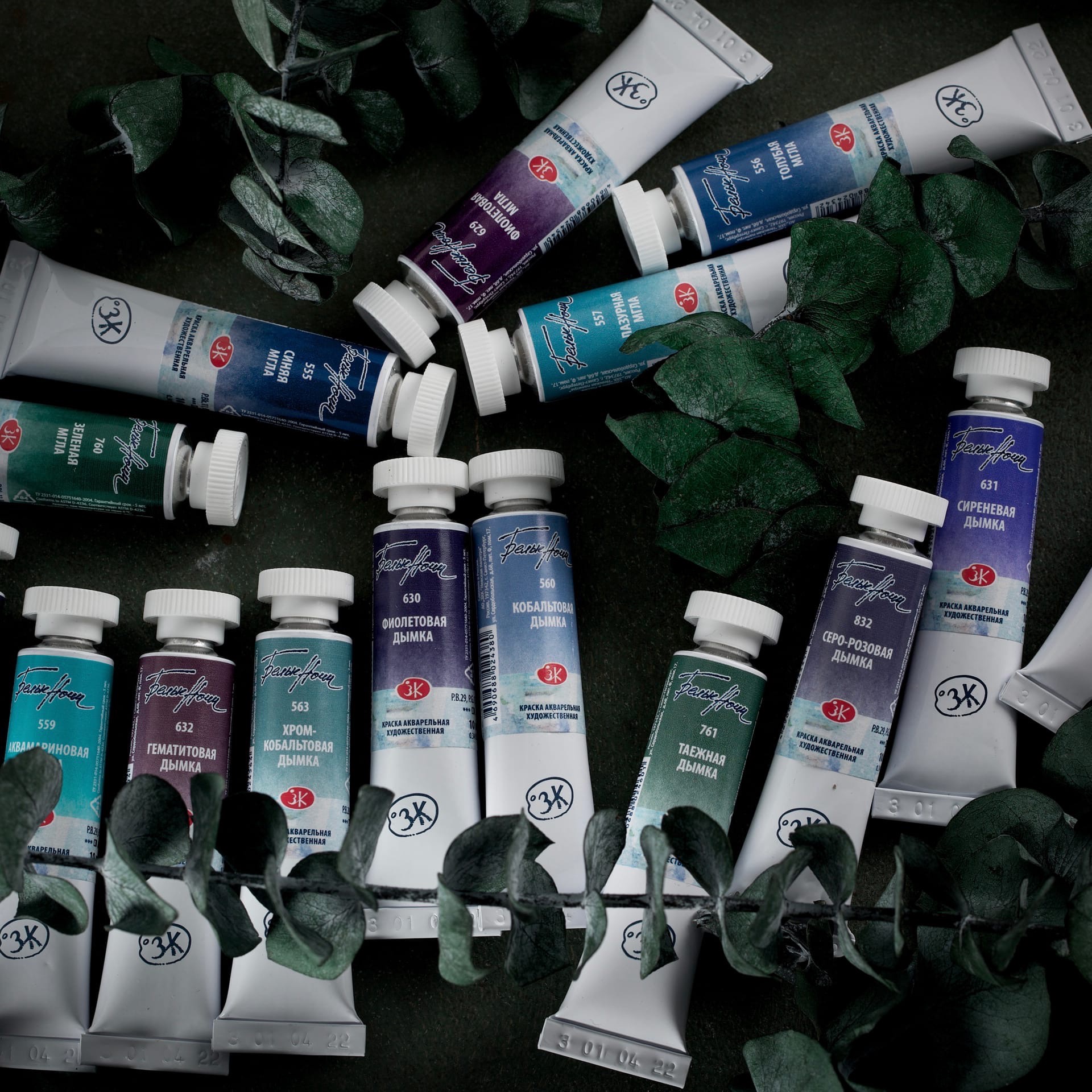 Пятнадцать новых цветов: аквамариновая дымка, гематитовая дымка, голубая дымка, голубая мгла, зеленая мгла, кобальтовая дымка, лазурная мгла, серо-розовая дымка, серо-синяя дымка, синяя мгла, сиреневая дымка, таежная дымка, фиолетовая дымка, фиолетовая мгла, хром-кобальтовая дымка. Краски на основе чёрного пигмента PBk11 объединены названием «мгла». Краски «дымка» это композиции разных пигментов с сильной грануляцией. Наименования «мгла» и «дымка» позволяют по названию отделить краски с сильной грануляцией от других оттенков в палитре.