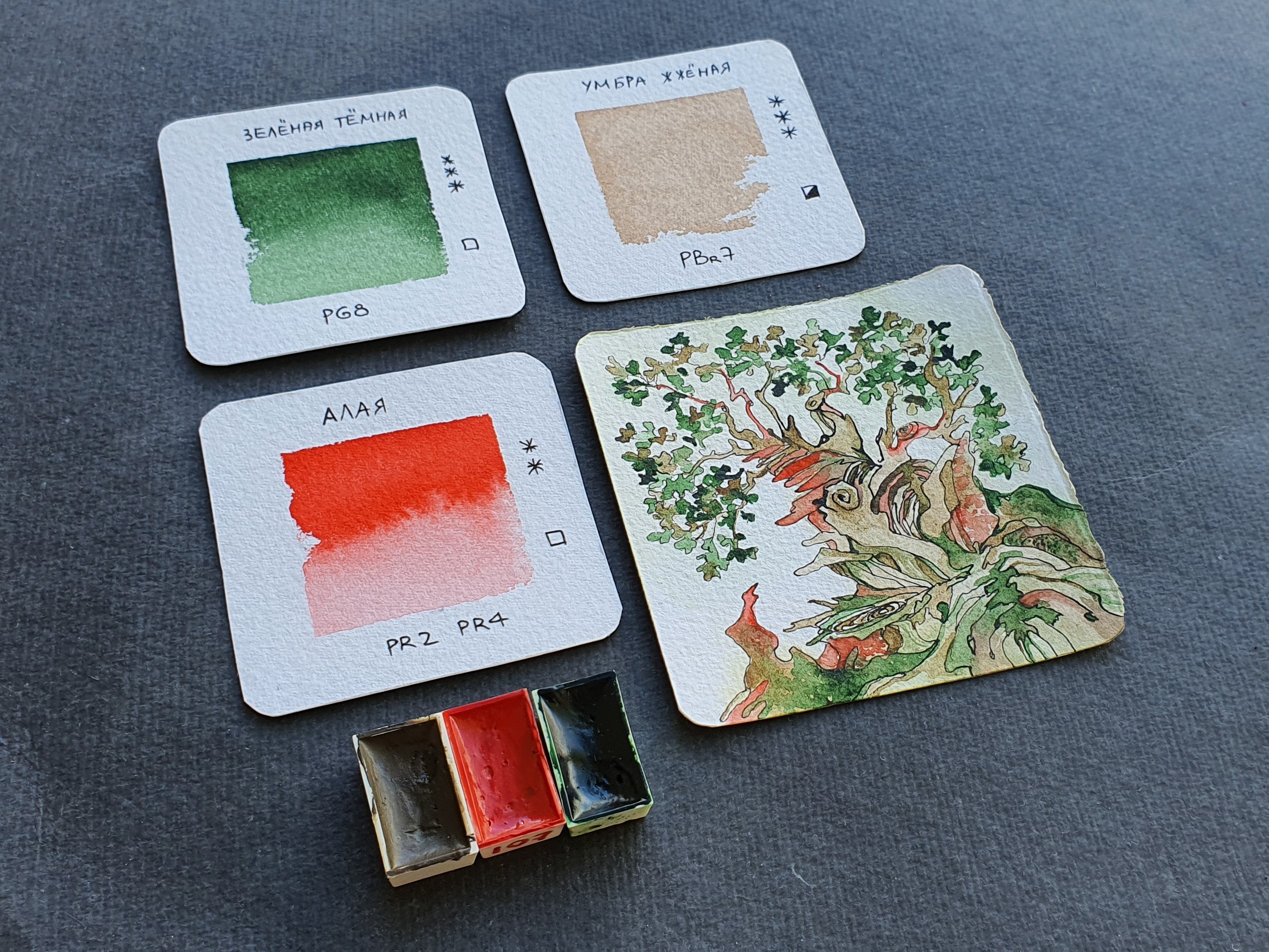 В составе красок гуммиарабик высшей степени очистки и высококачественные пигменты, которые обеспечивают насыщенность цветов, чистоту и прозрачность красочного слоя.