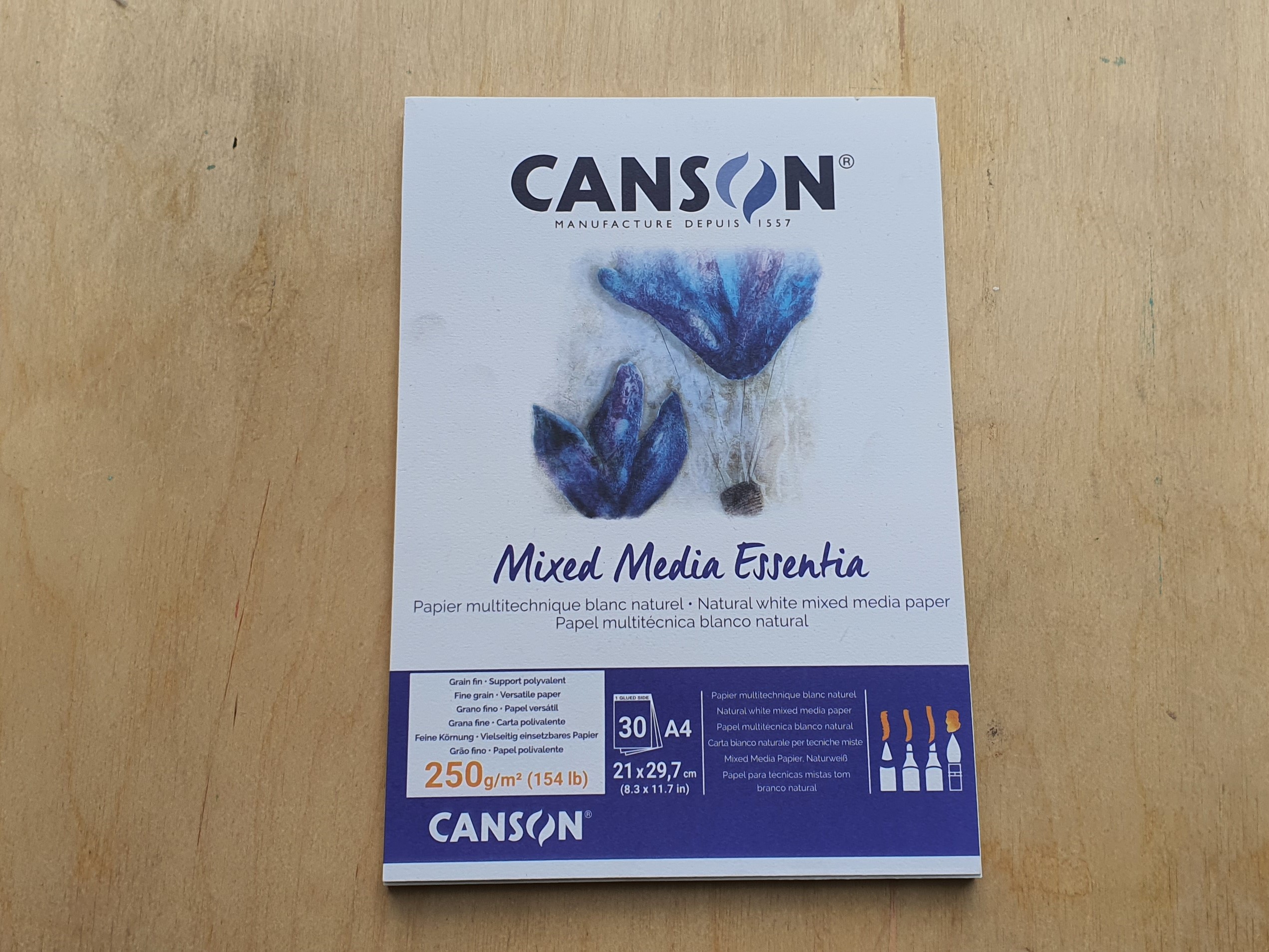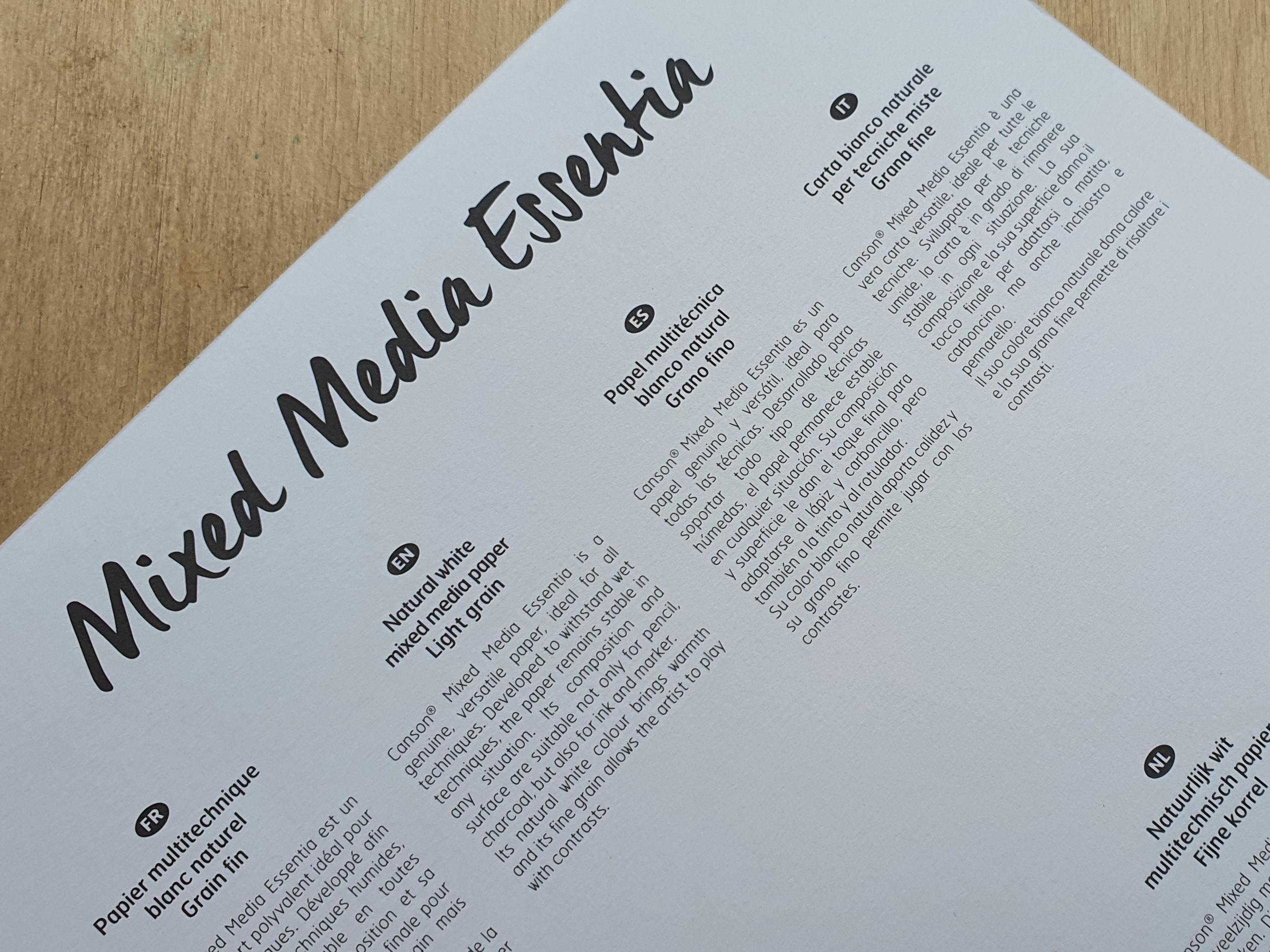 Canson «Mixed Media Essentia»— настоящая, универсальная бумага, разработанная, чтобы выдерживать смешанную технику, Бумага остается стабильной в любой ситуации, даже при влажных техниках. Её состав и поверхность листа подходит не только для карандаша, маркеров, угля, но и для туши, гуаши и даже акрила.