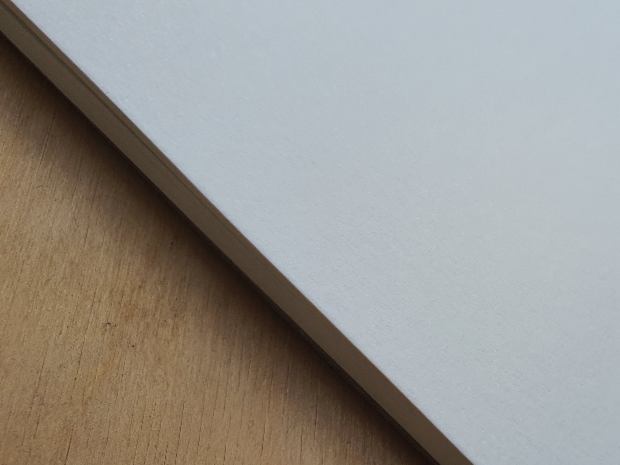 Одна сторона листа имеет очень лёгкую, но заметную глазу текстуру, а «оборотная» часть листа- абсолютно гладкая. Лист плотный, отделяется от склеенного блока без каких-либо следов на срезе.