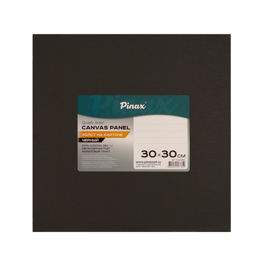 Холст на картоне чёрный 100% хлопок, 280г/м2, 30х30см