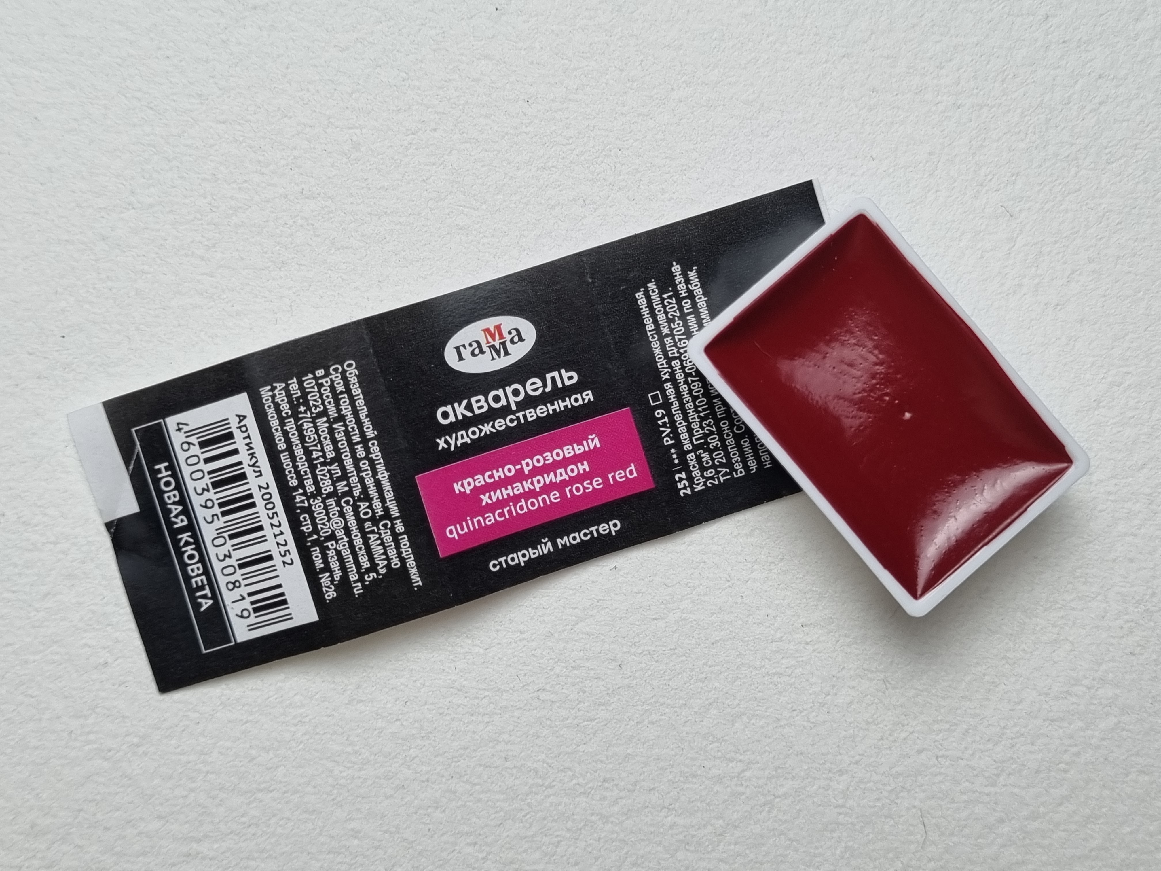 Акварель художественная Гамма "Старый мастер", красно-розовый хинакридон, 2,6мл, кювета