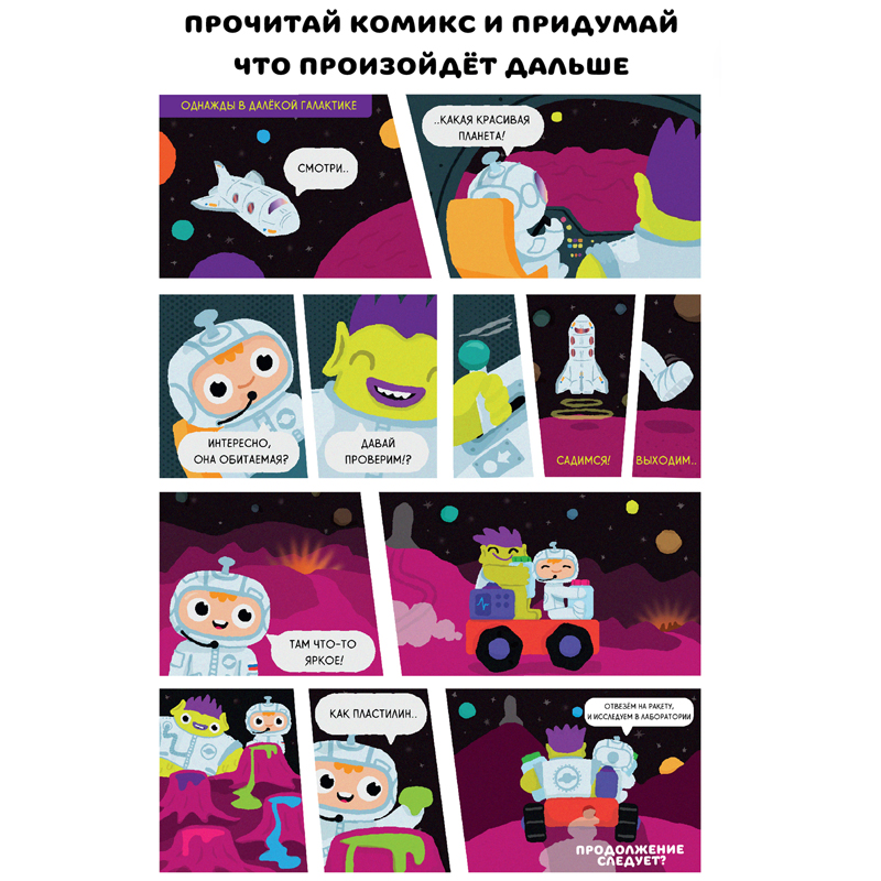 Детали конструктора ЗD: ракета и игровые локации, игровые персонажи: космонавт и монстрик, набор глазок разного размера, набор стеков.