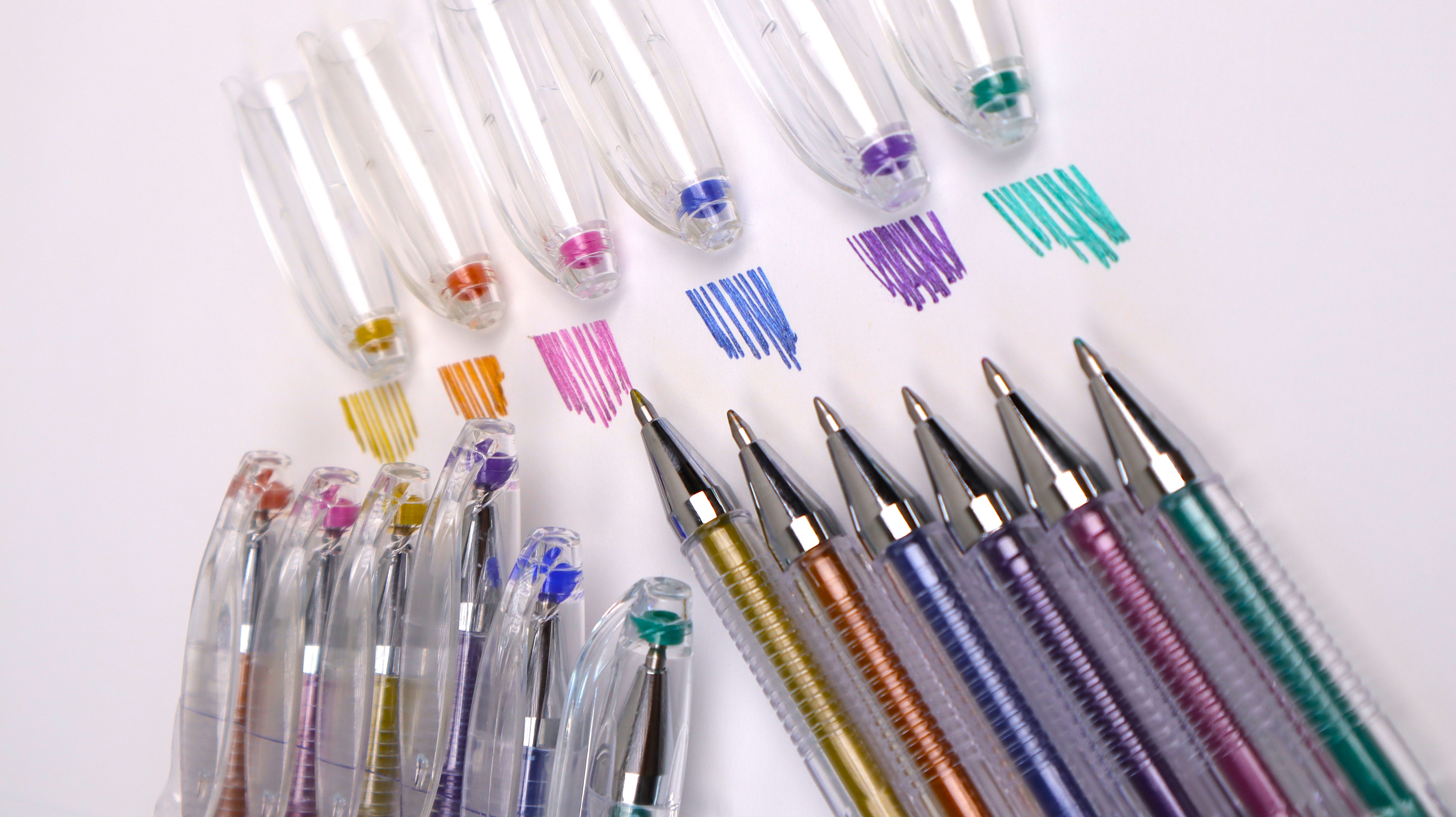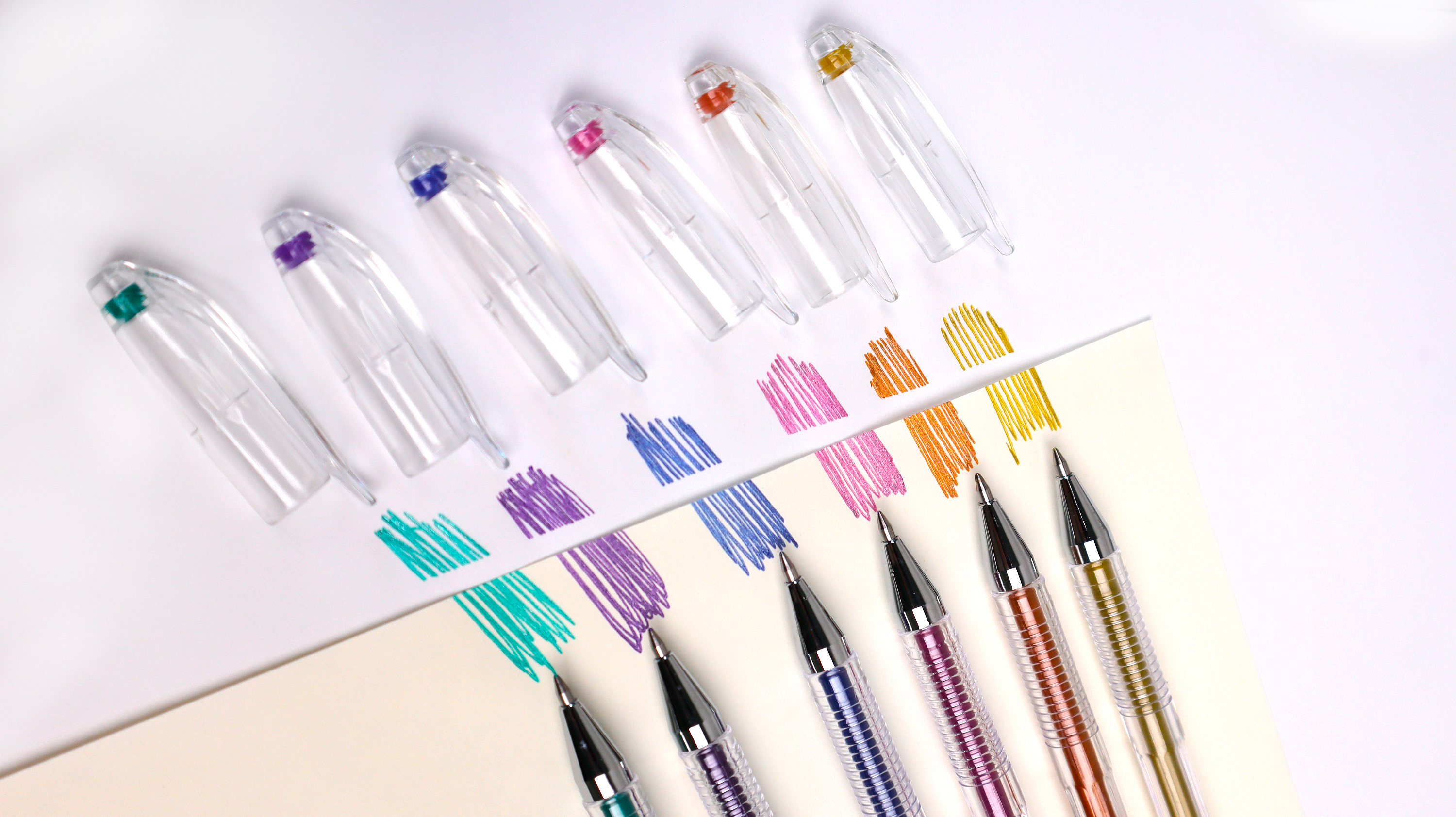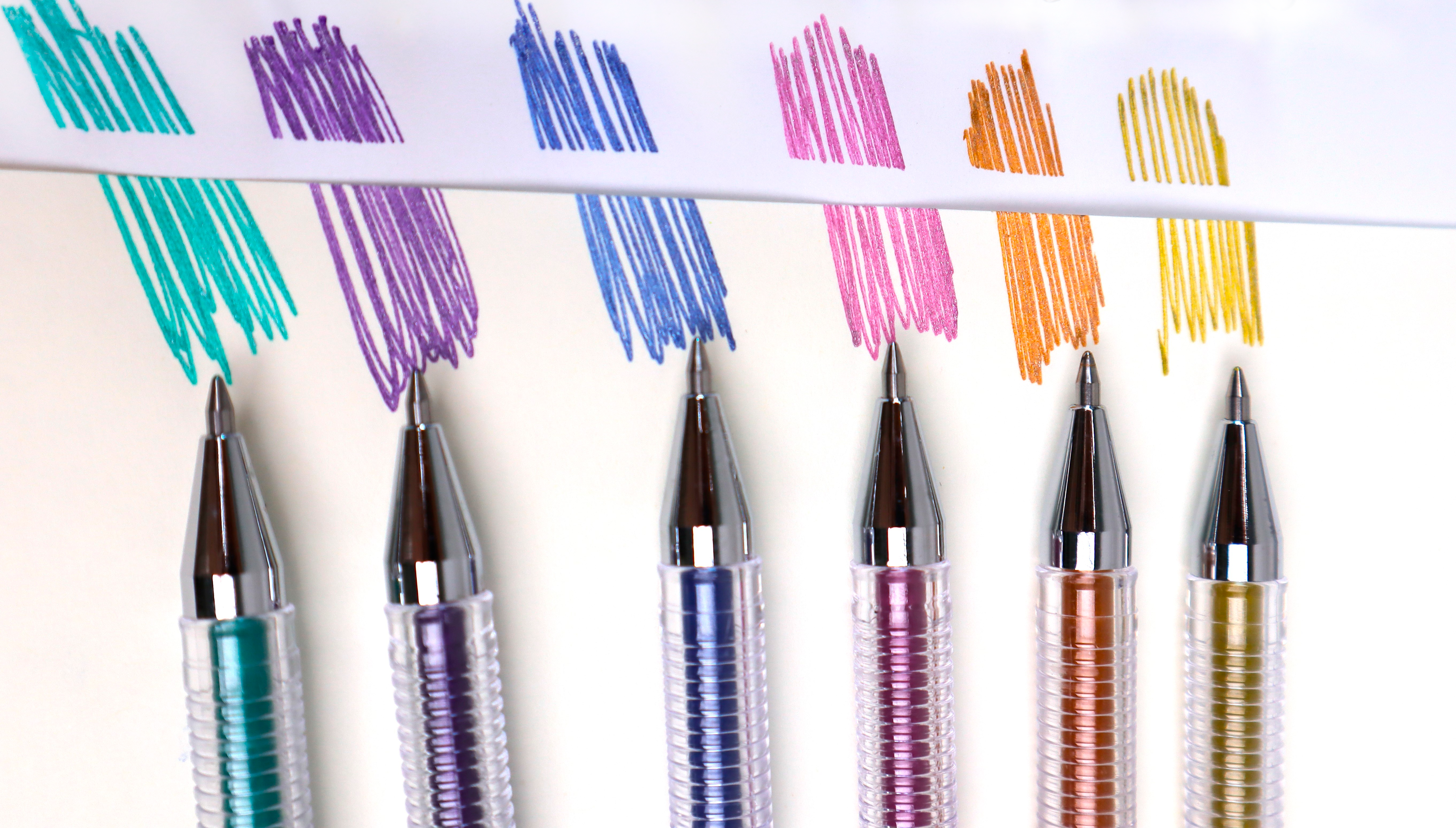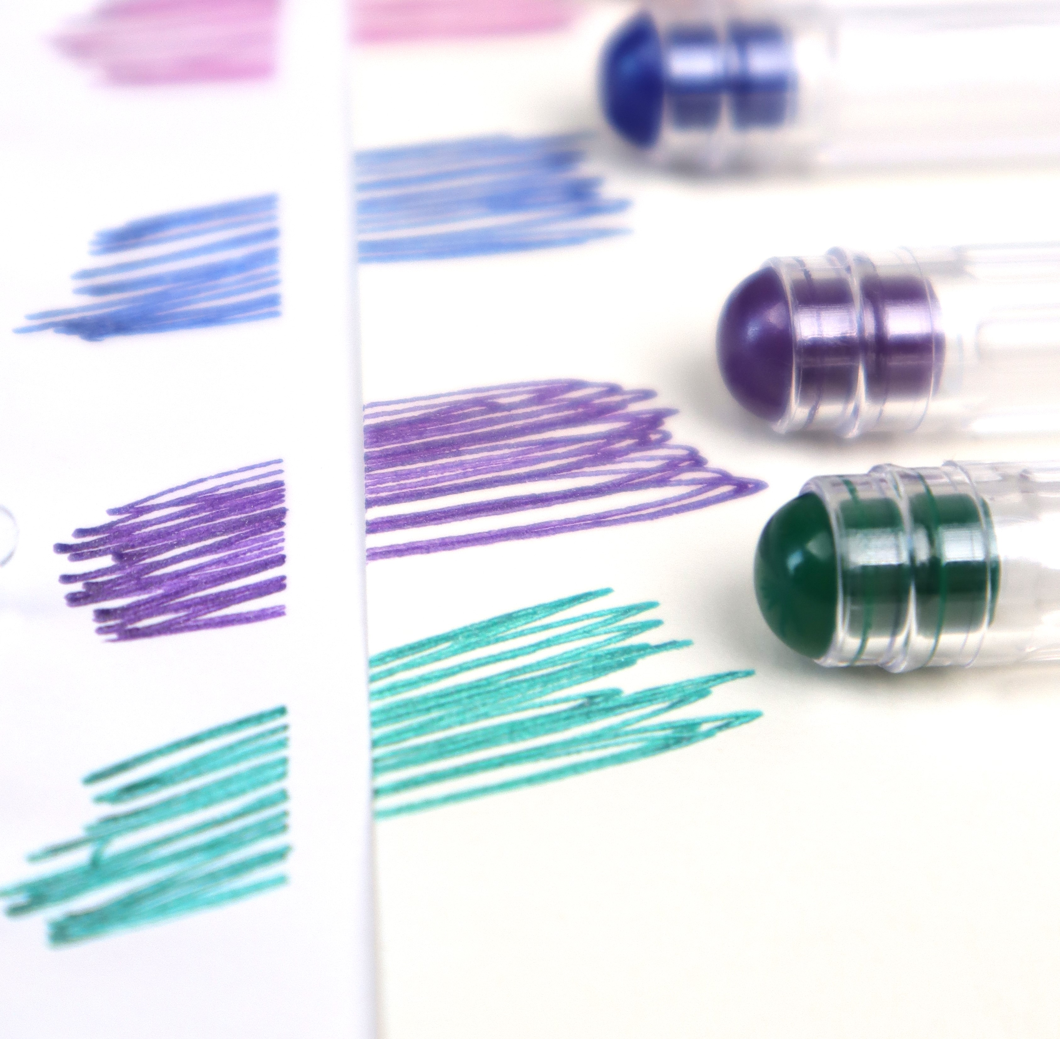 Гелевые ручки металлических оттенков легко и мягко пишут и рисуют на различных видах бумаги, в том числе темных.