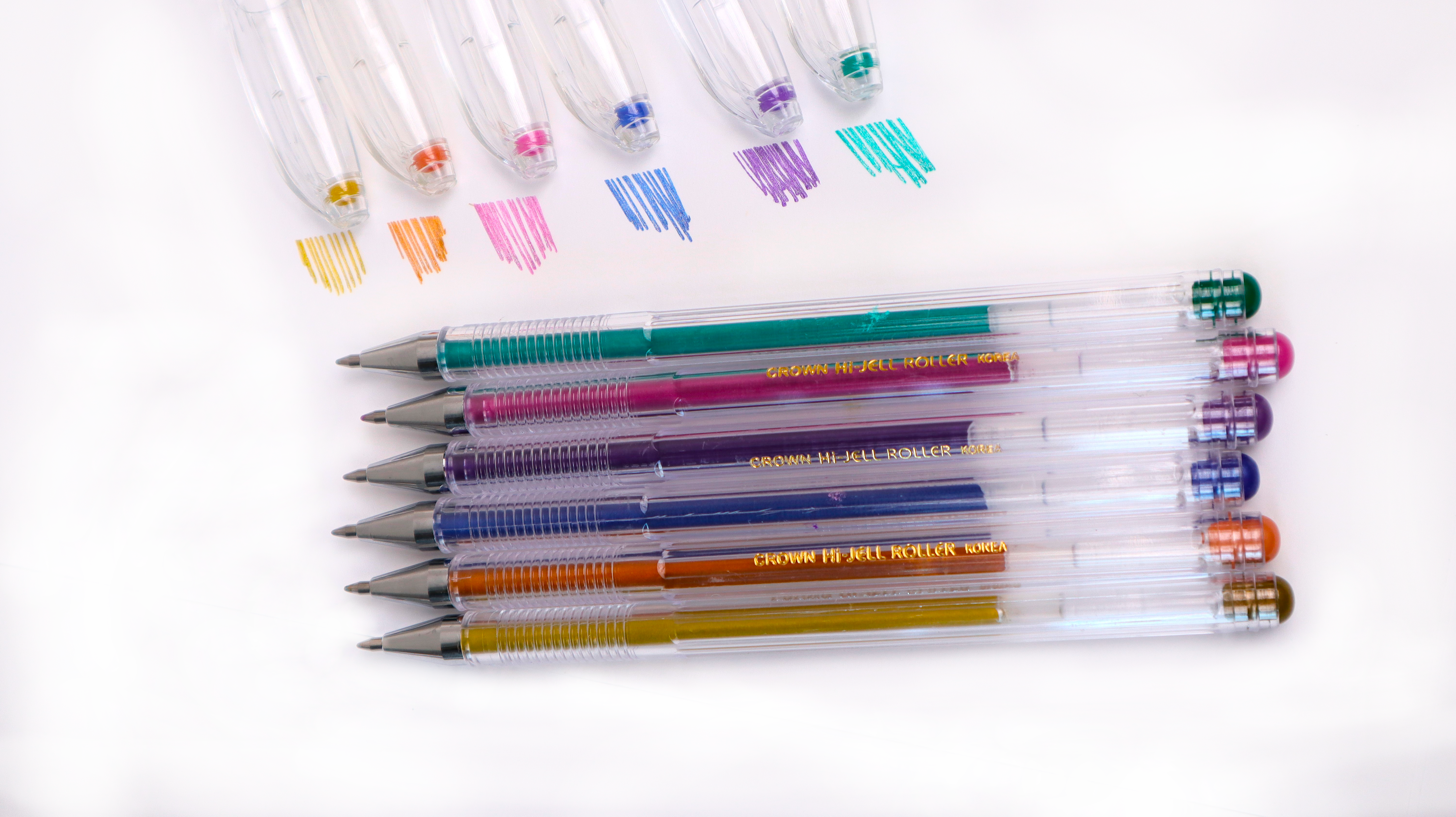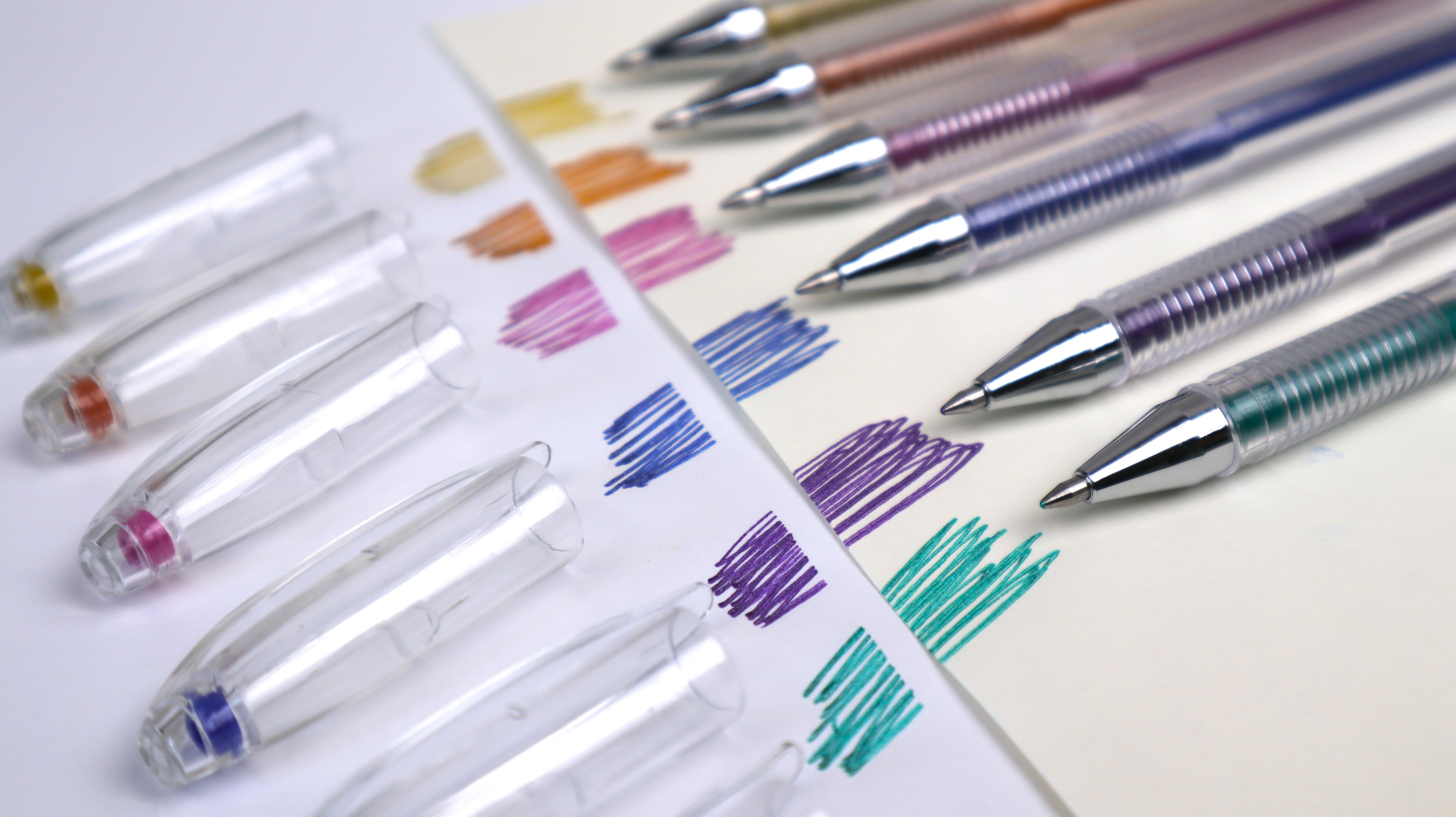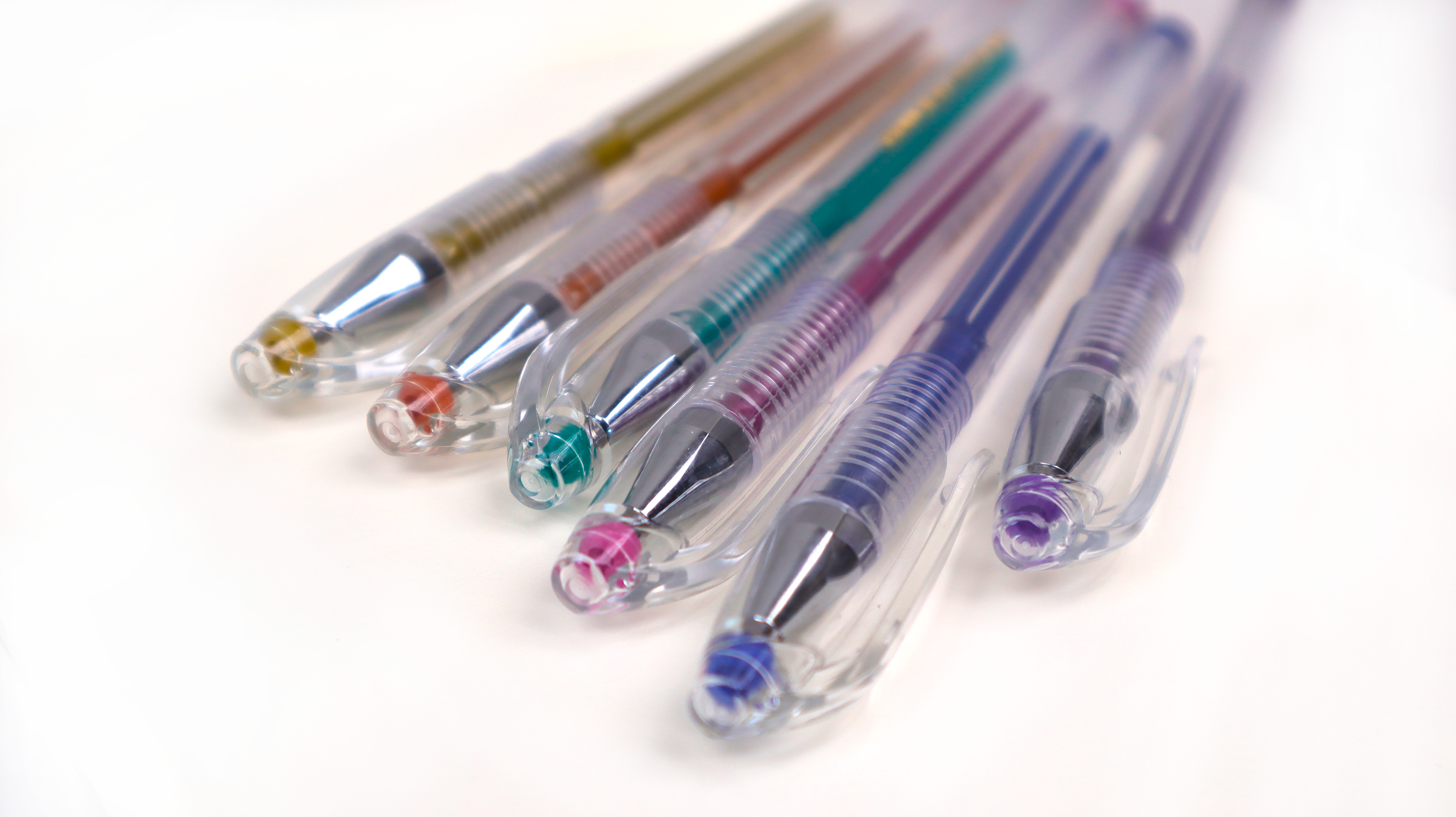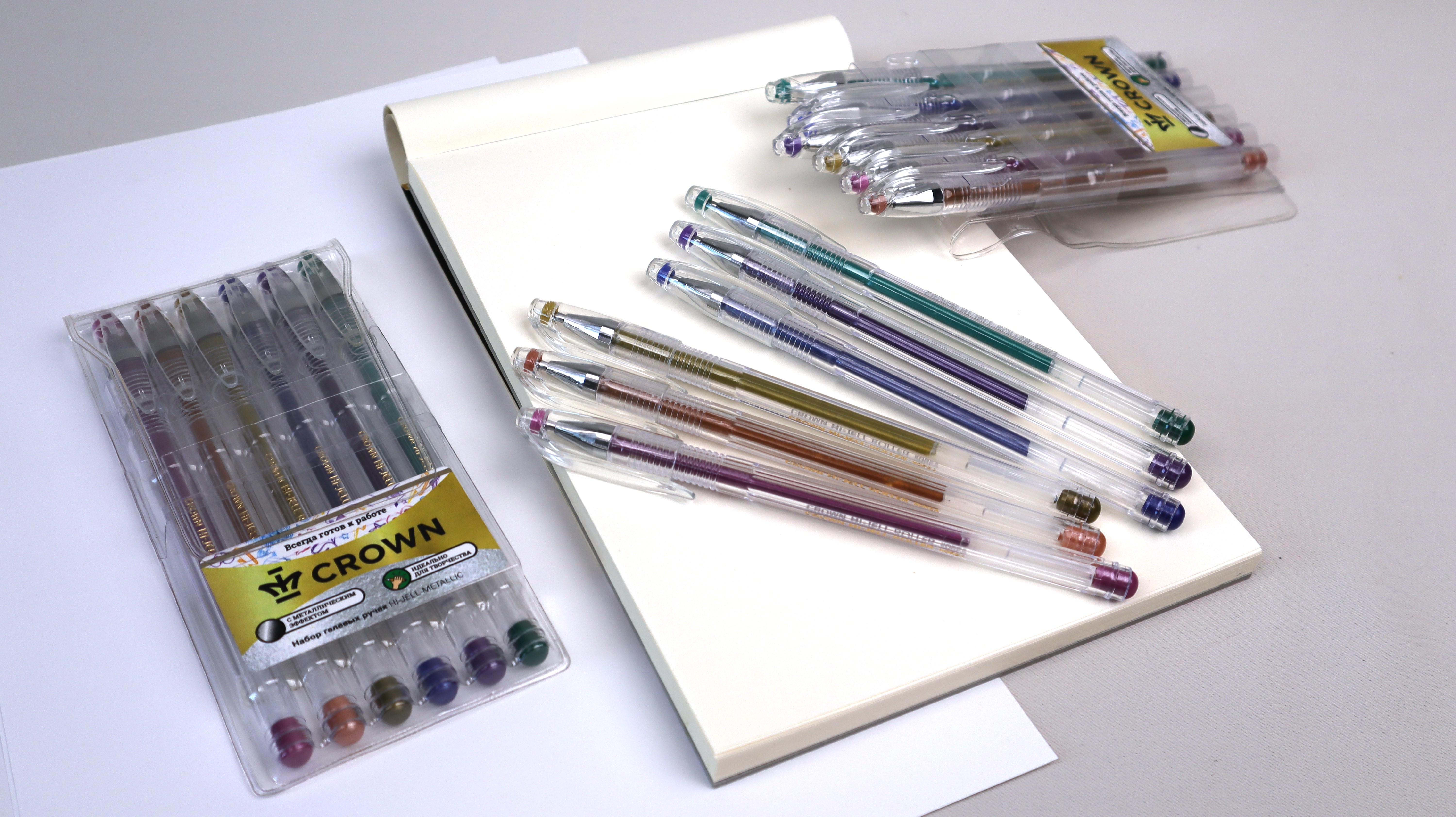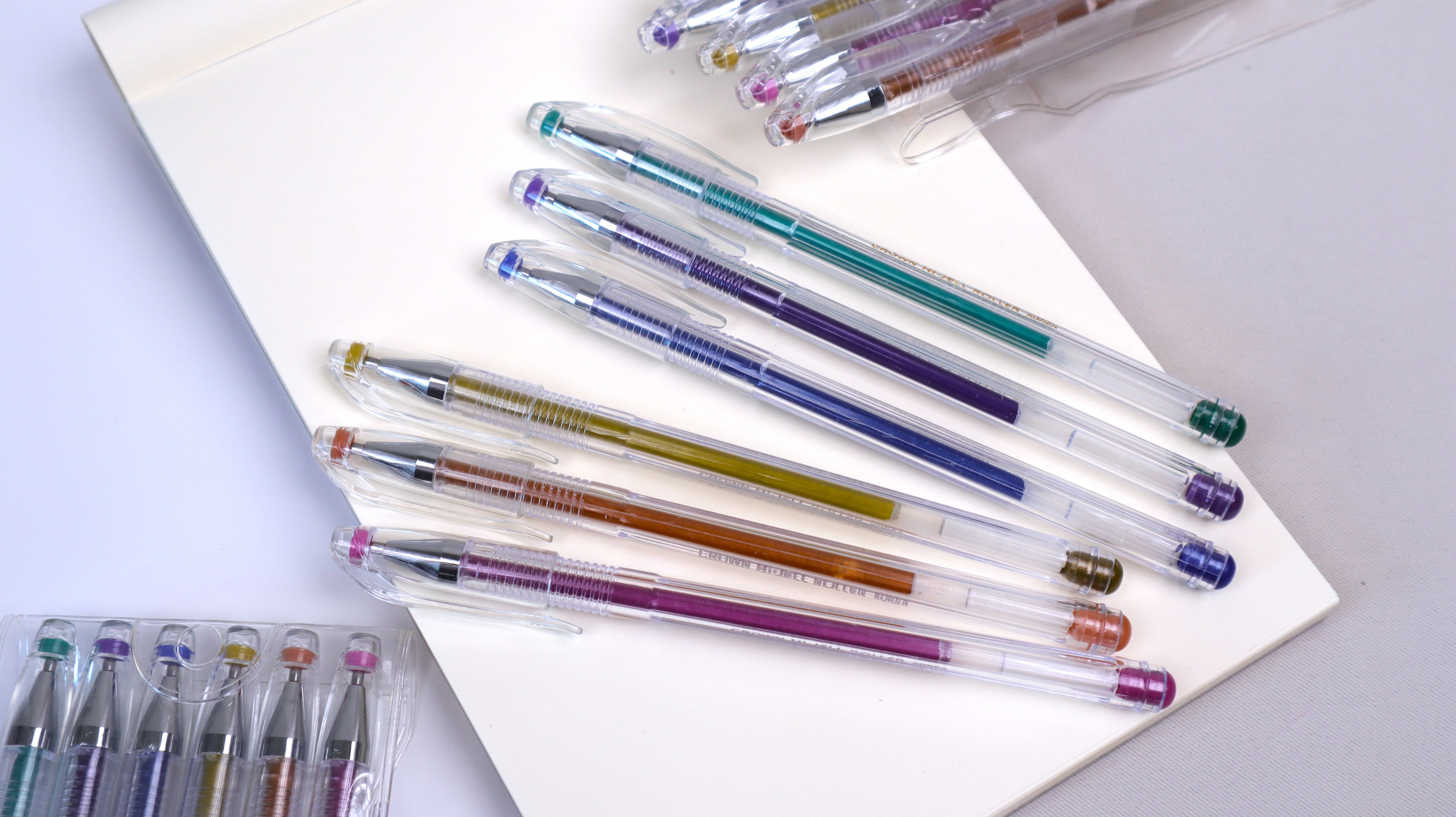 Гелевые ручки металлических оттенков легко и мягко пишут и рисуют на различных видах бумаги, в том числе темных.