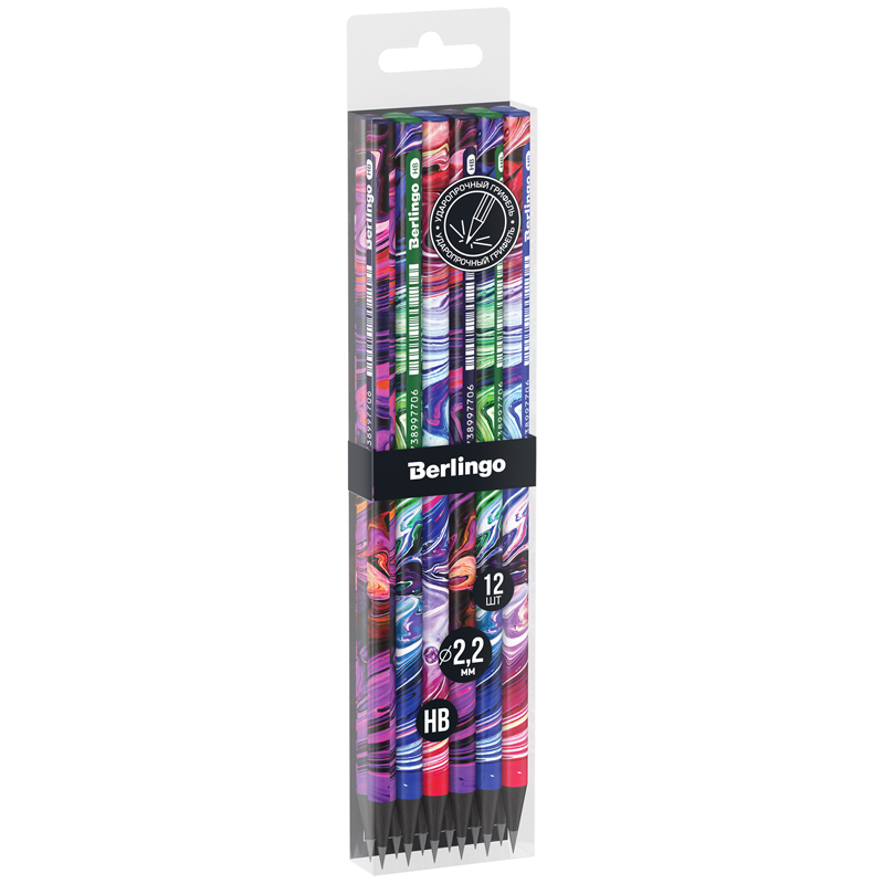 Набор чернографитных карандашей Berlingo "Liquid Wave" из черного дерева с заточкой. Карандаш закруглен, срез обработан. Дизайны корпуса представлены в 3-х вариантах. Матовое покрытие корпуса добавляет особый комфорт при работе. Карандаш создан из специально обработанной древесины для идеальной заточки. Он подходит для черчения и рисования. Карандаш не ломается при падении и безопасен для детей. Упаковка в прозрачный PET-бокс с европодвесом по 12шт.