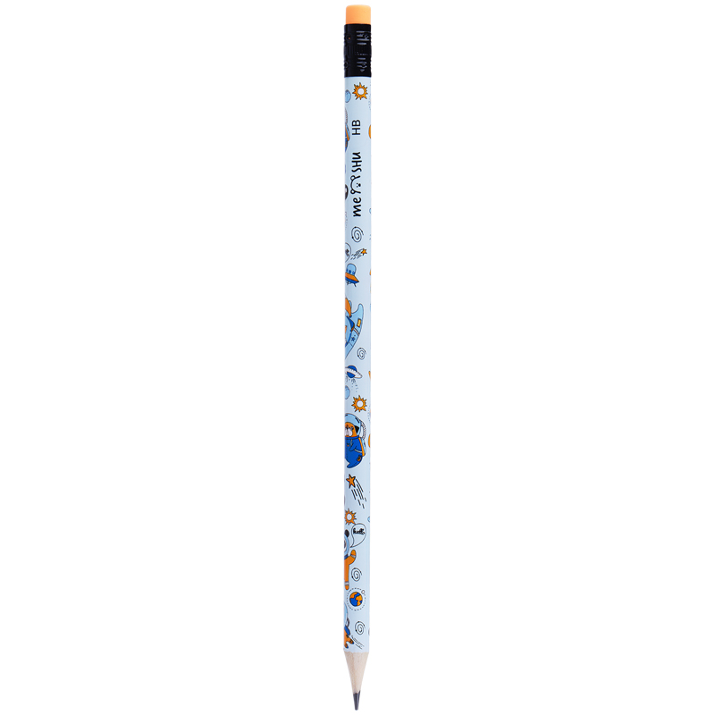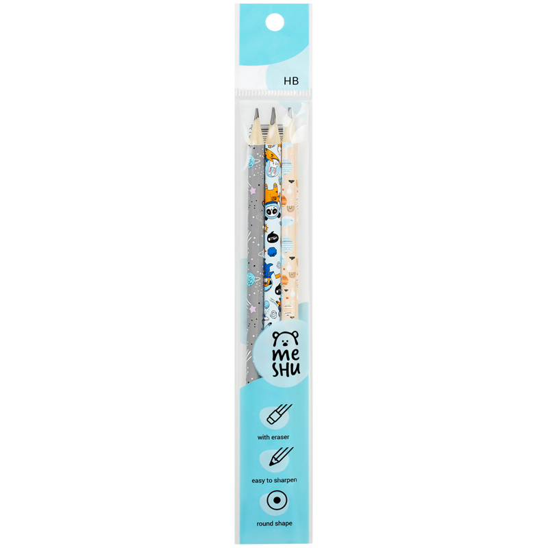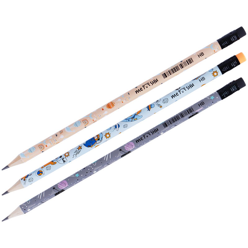 Набор карандашей ч/г MESHU "Space" 3шт., HB, заточен., с печатью, с ластиком, ассорти, пакет, европо