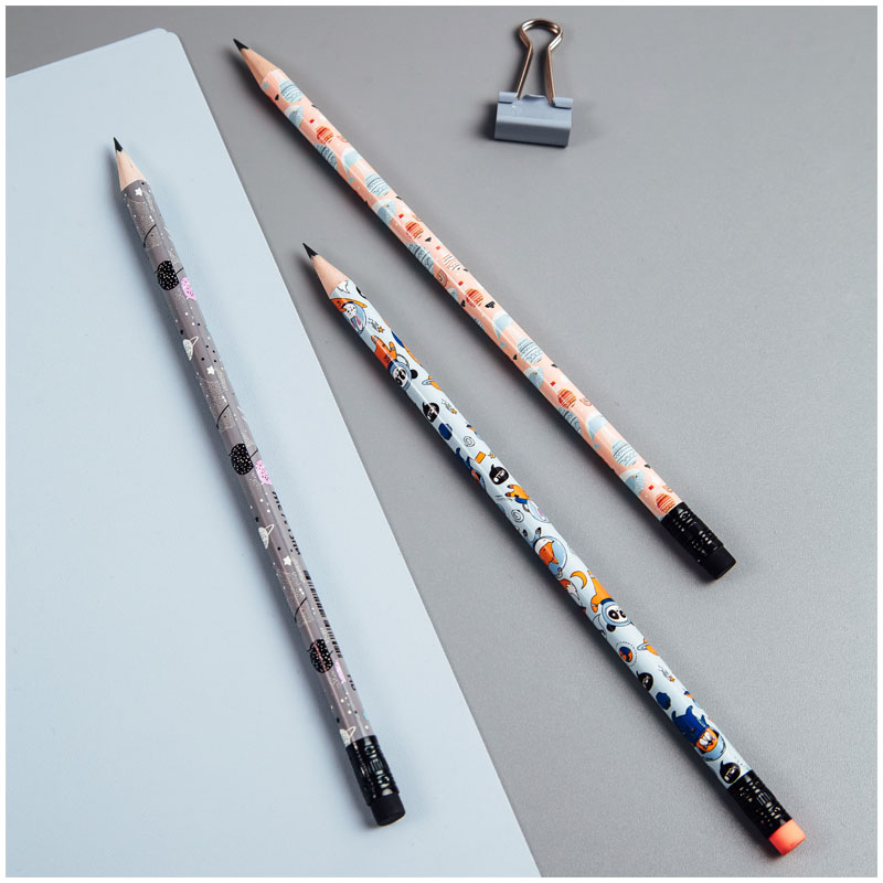 В наборе 3 карандаша. Забавные дизайны серии Space в космической тематике понравятся всем любителям яркой канцелярии, которая привлекает внимание. Карандаши легко затачиваются и идеально подойдут для черчения и рисования. Письмо с карандашами MESHU мягкое и уверенное. Они заточены и уже готовы к работе.