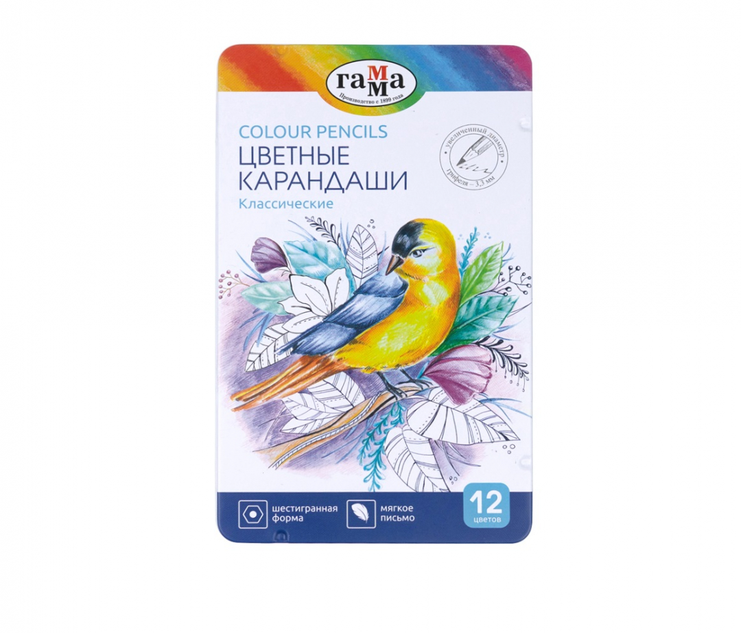 Цветные карандаши ГАММА серии «Классические» в стильном металлическом пенале отлично подходят в качестве подарка, а также их удобно брать с собой на занятия или прогулку.