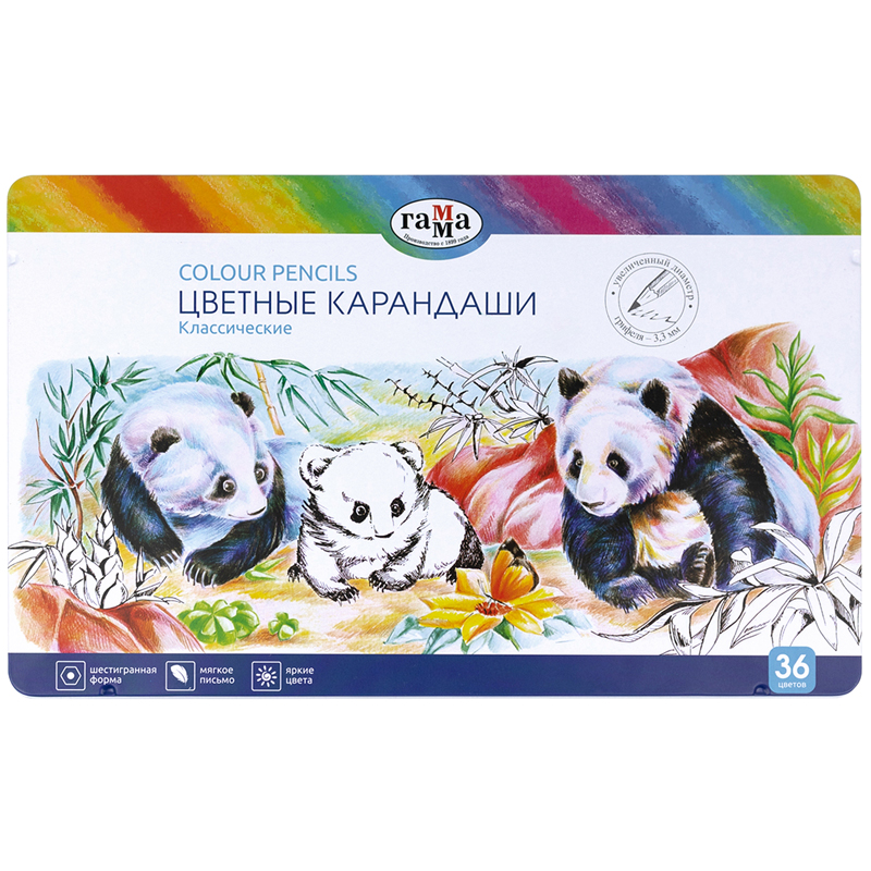 Карандаши цветные Гамма "Классические", 36цв, увелич. диаметр грифеля 3,3мм, заточен., метал. пенал