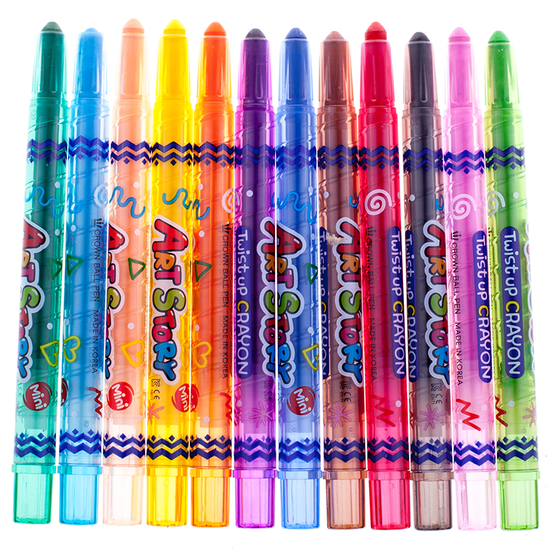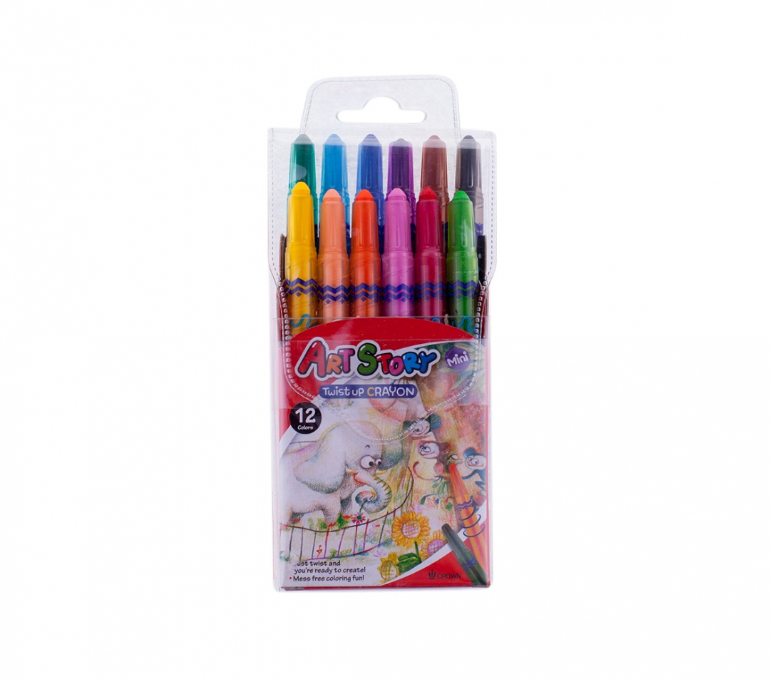 Карандаши восковые Crown "ArtStory", 12цв., мини, выкручивающийся стержень, ПВХ, европодвес