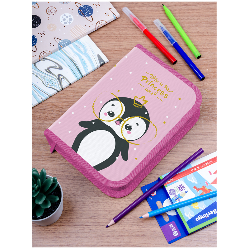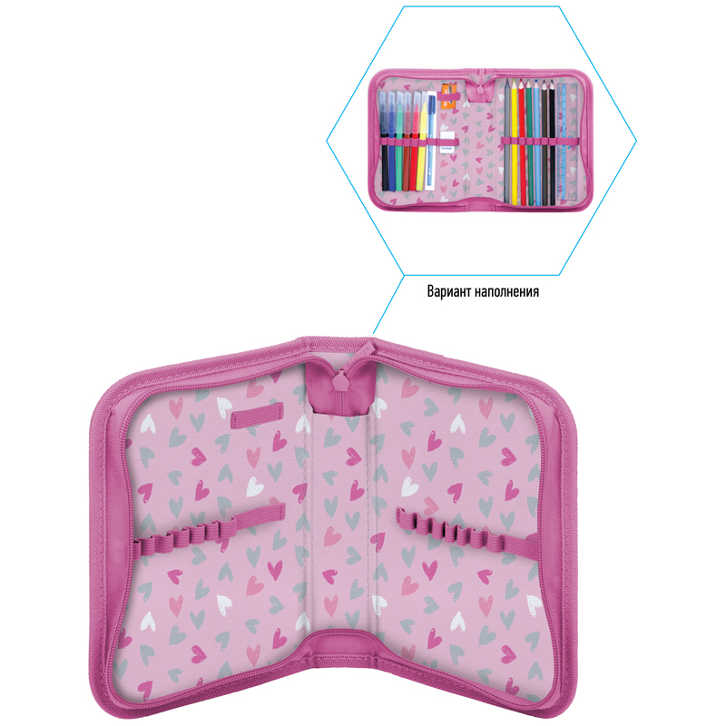 Внутри имеются резиночки-крепления для канцтоваров. Упакован в индивидуальный пакет. Поставляется без наполнения.