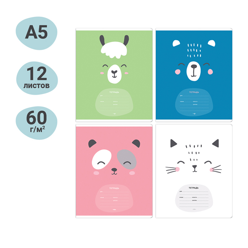 Формат А5. Внутренний блок – офсет 60-65 г/м², клетка с полями. Объём блока – 12л. Обложка – плотный чистоцеллюлозный картон, скругленные углы, ВД-лак.