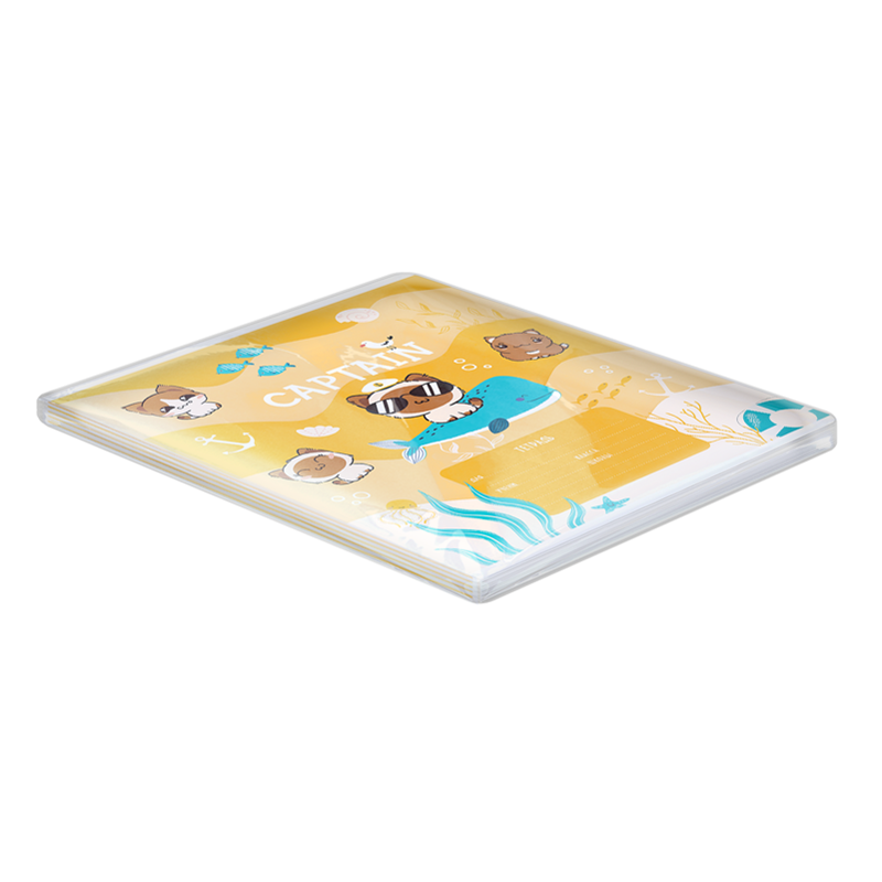 Формат А5. Внутренний блок – офсет 60-65 г/м², линия с полями. Объем блока – 12л. Обложка – плотный чистоцеллюлозный картон, скругленные углы, ВД-лак.