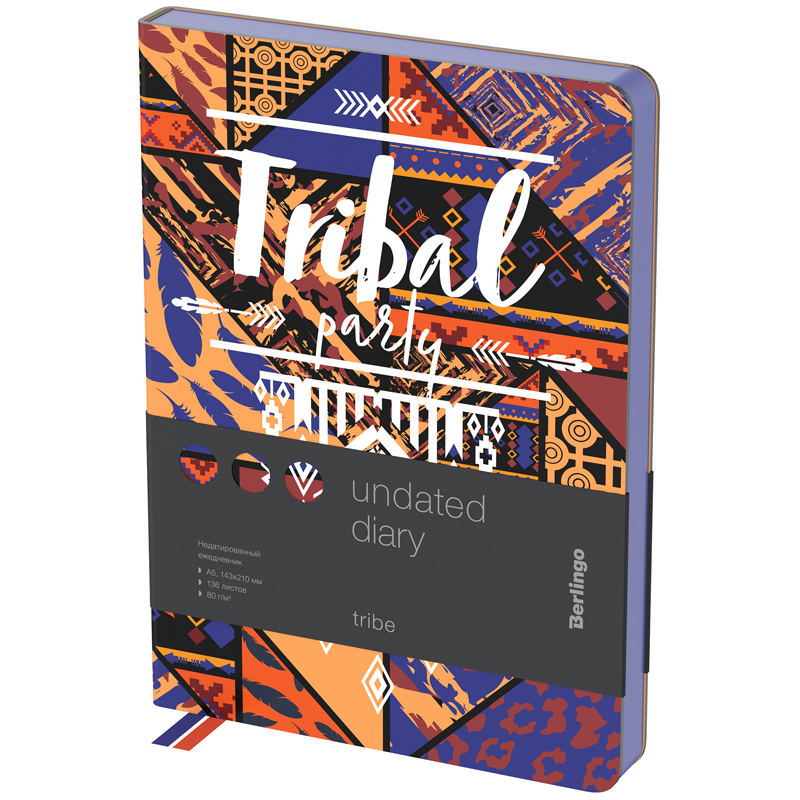 Стильный недатированный ежедневник Berlingo "Tribe" формата A5 с цветным контрастным срезом и ультрамягкой обложкой из высококачественной экокожи.