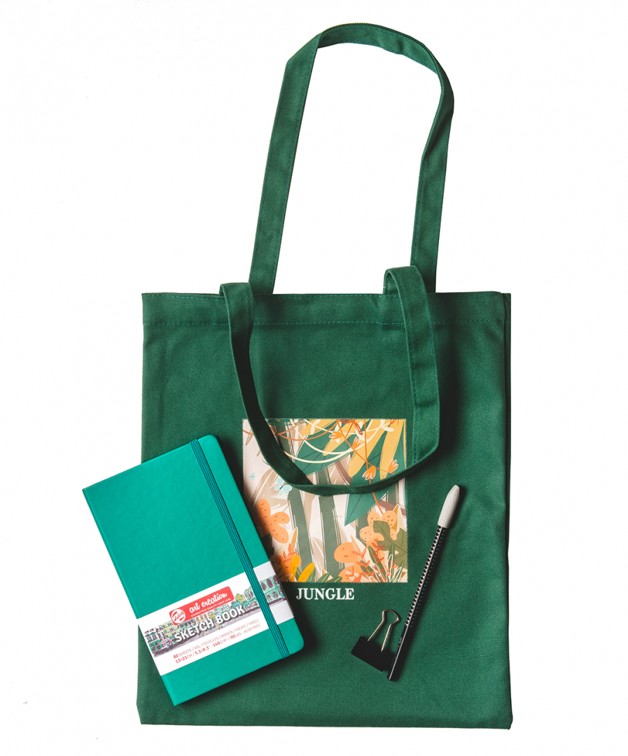 Комплект "Green": сумка-шоппер, скетчбук, карандаш, ластик и зажим